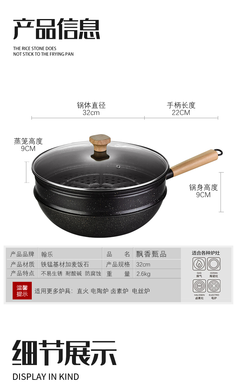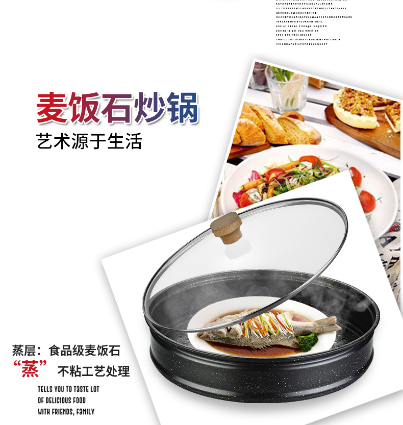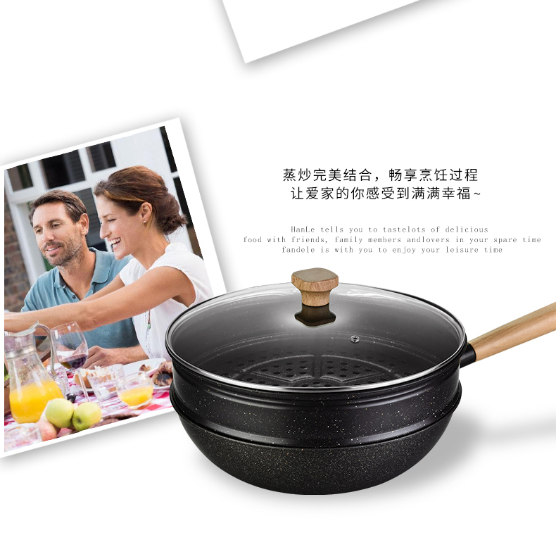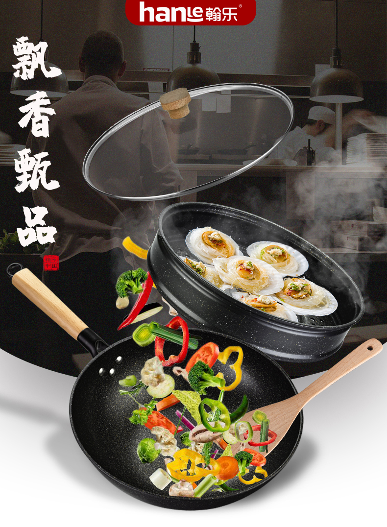 翰乐麦饭石不粘炒锅+蒸笼 送铲子 电磁炉煤气灶通用HL-T08飘香甄品(套)