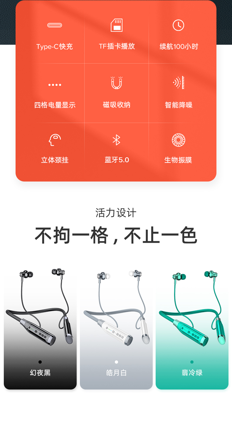 勒沃项圈蓝牙耳机LV-A12(单位:个) 黑色