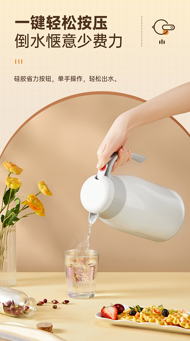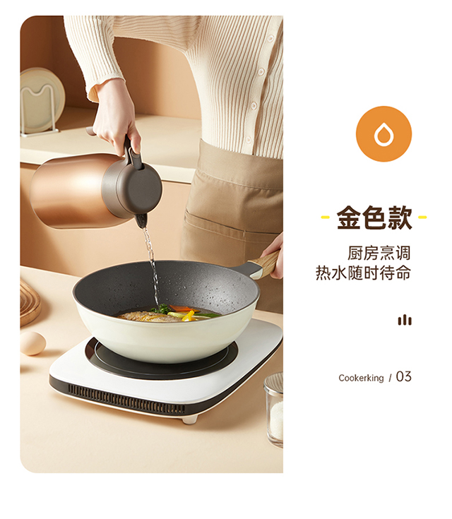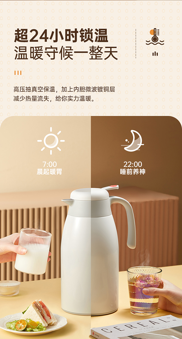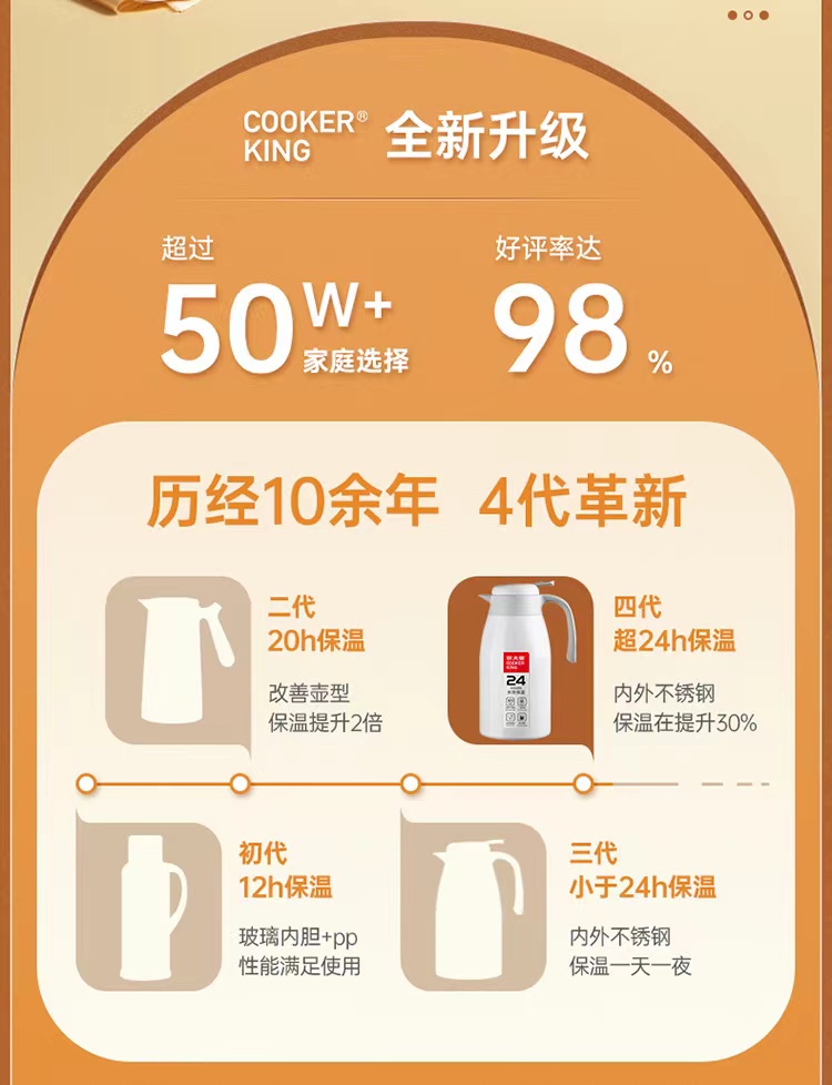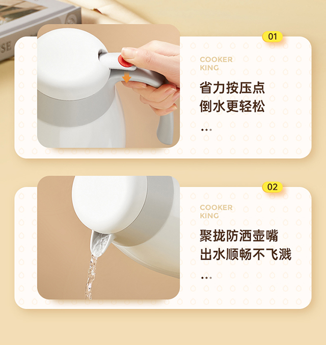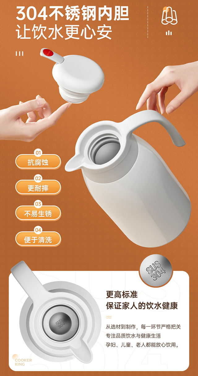 炊大皇(COOKER KING) 保温壶 内304不锈钢真空保温防烫大容量家用办公暖水壶2.2L 个 雅黑色
