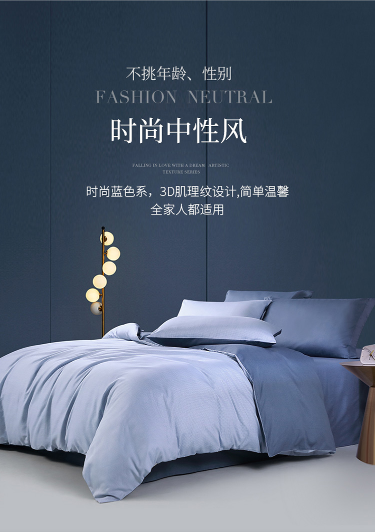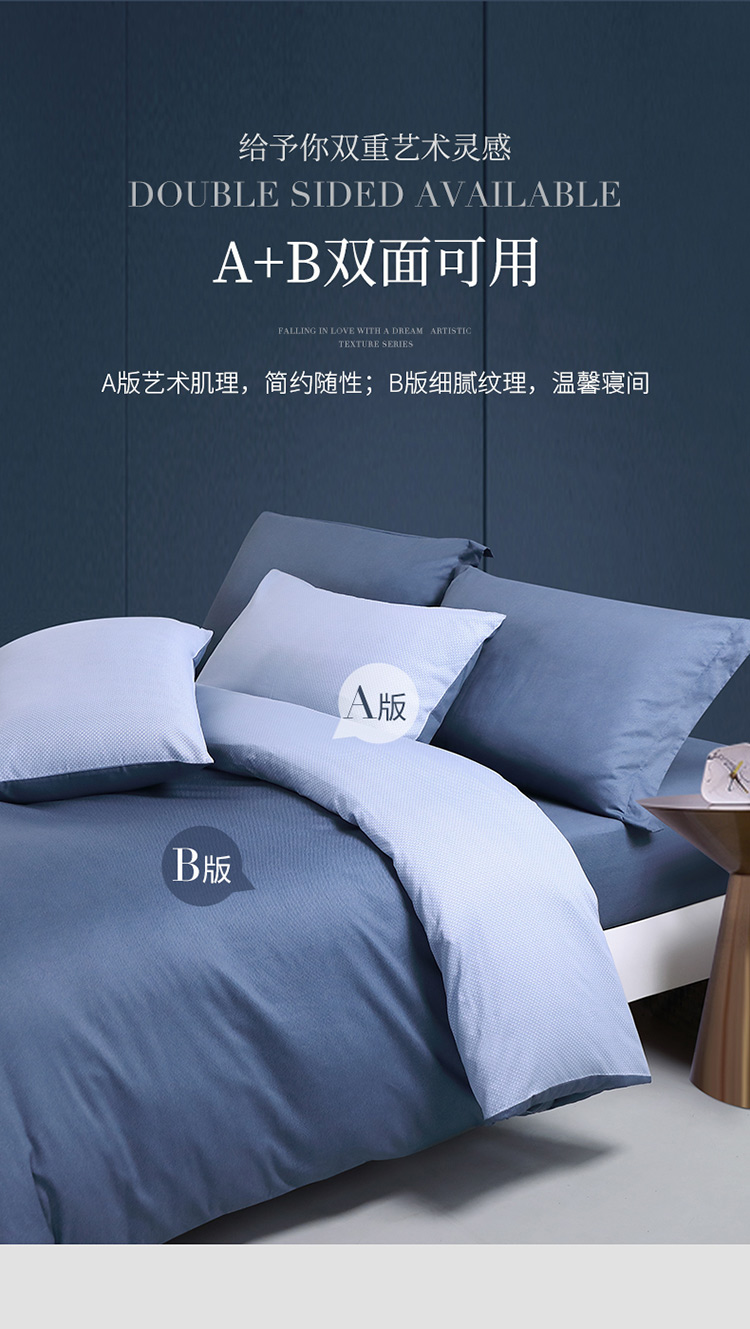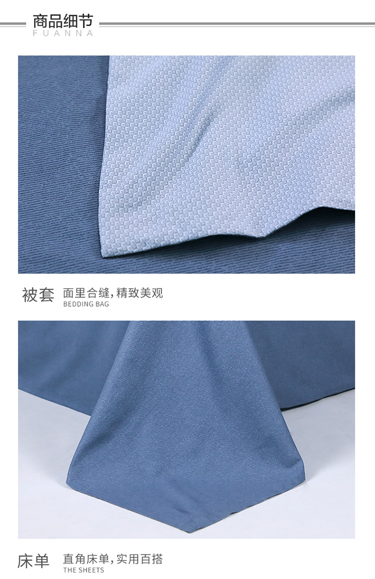 富安娜床上四件套纯棉极简·威尔港1米8床230*229cm 单位:套 蓝色