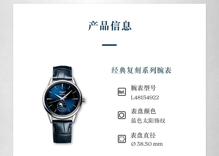 浪琴(LONGINES)经典复刻系列 机械皮带男表 L4.815.4.92.2 单位:块 蓝色
