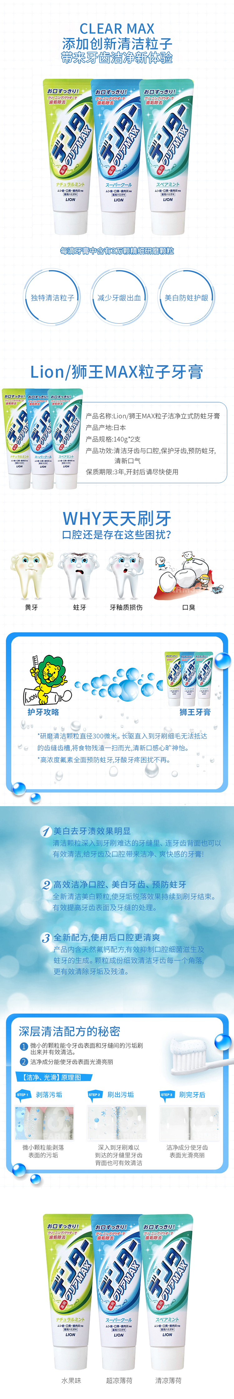 狮王MAX粒子洁净美白牙膏140g*2 清凉薄荷+超凉薄荷