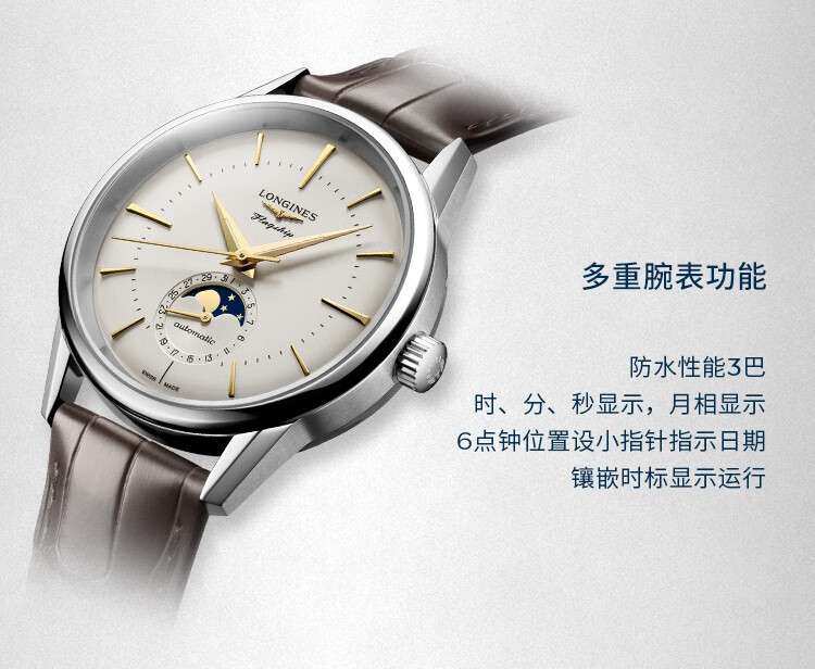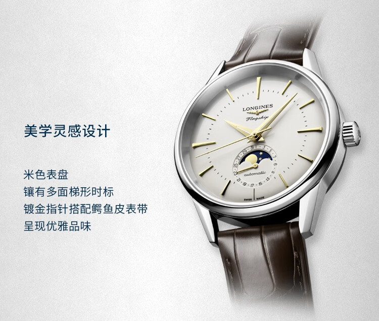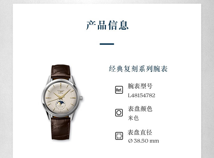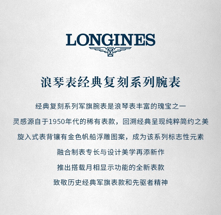 浪琴(LONGINES)经典复刻军旗系列 机械皮带男表L4.815.4.78.2 单位:块 白色