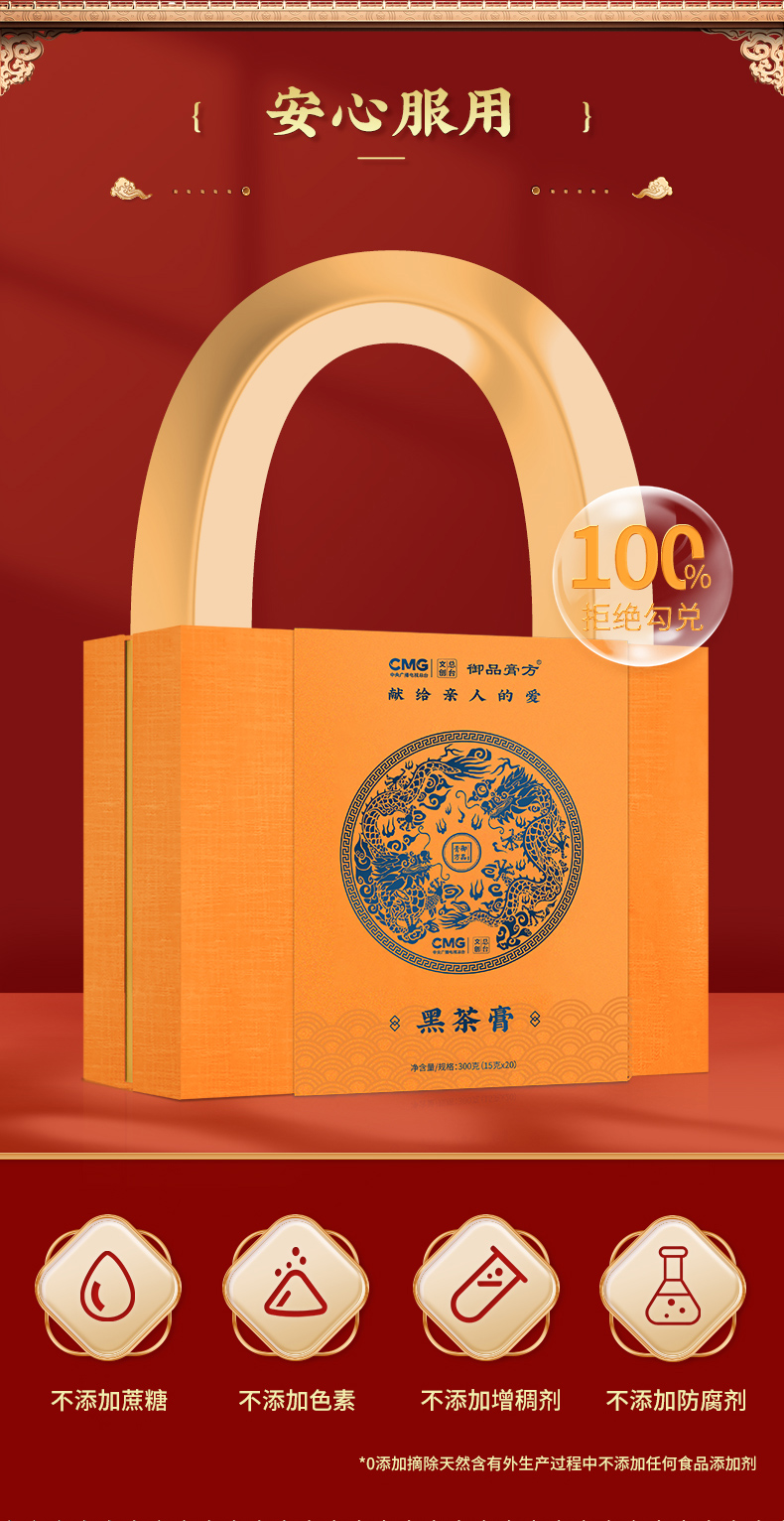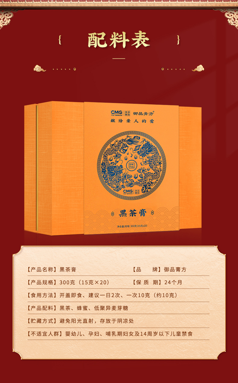 御品膏方黑茶膏总台文创联名黑茶膏滋补送礼即食滋补膏方礼盒装 灰橙色