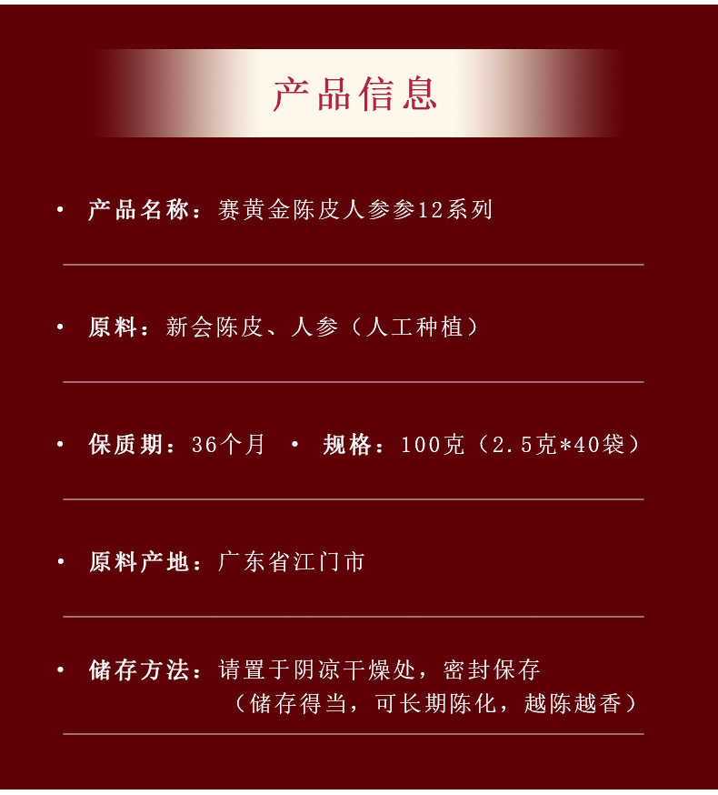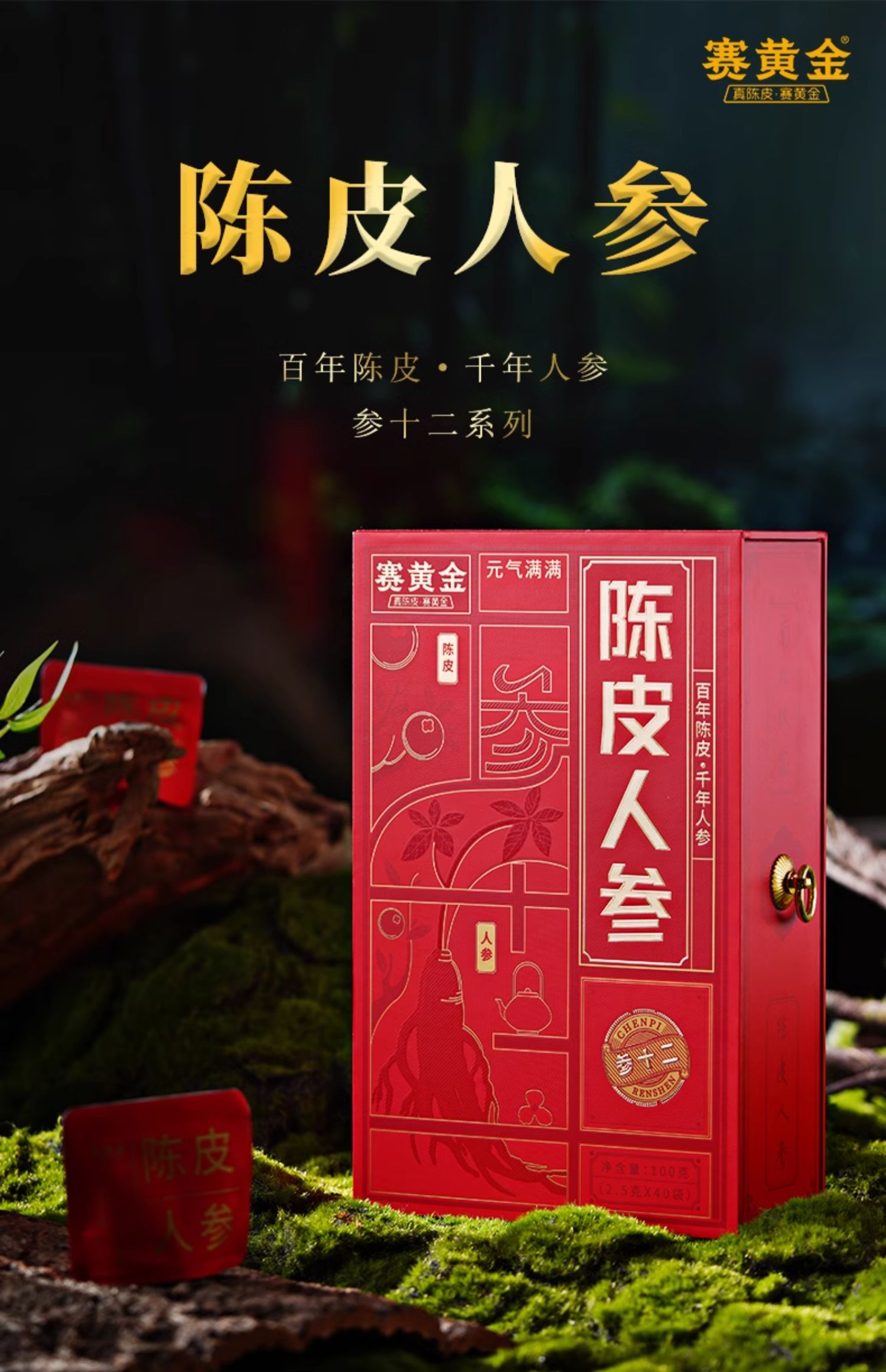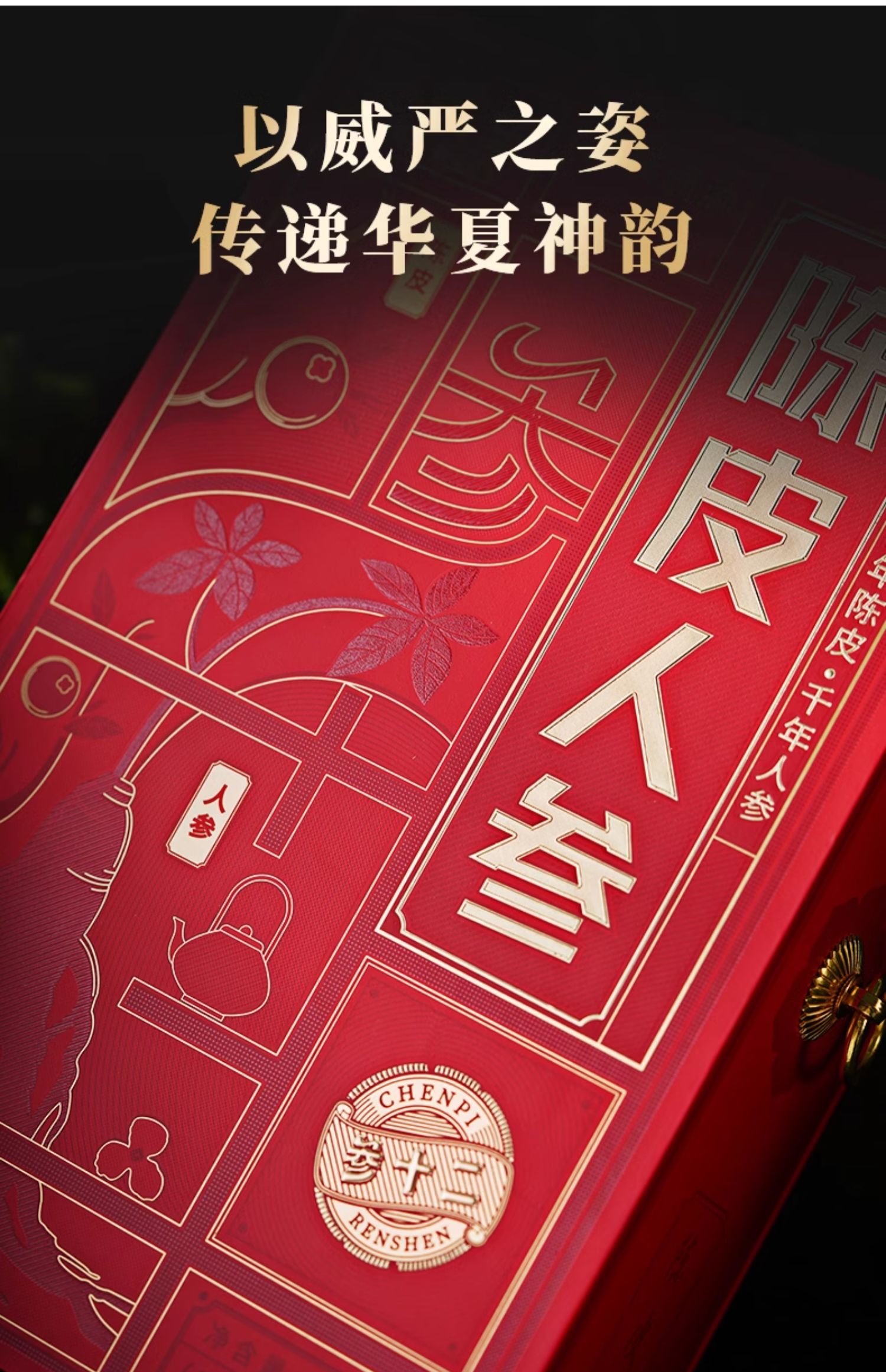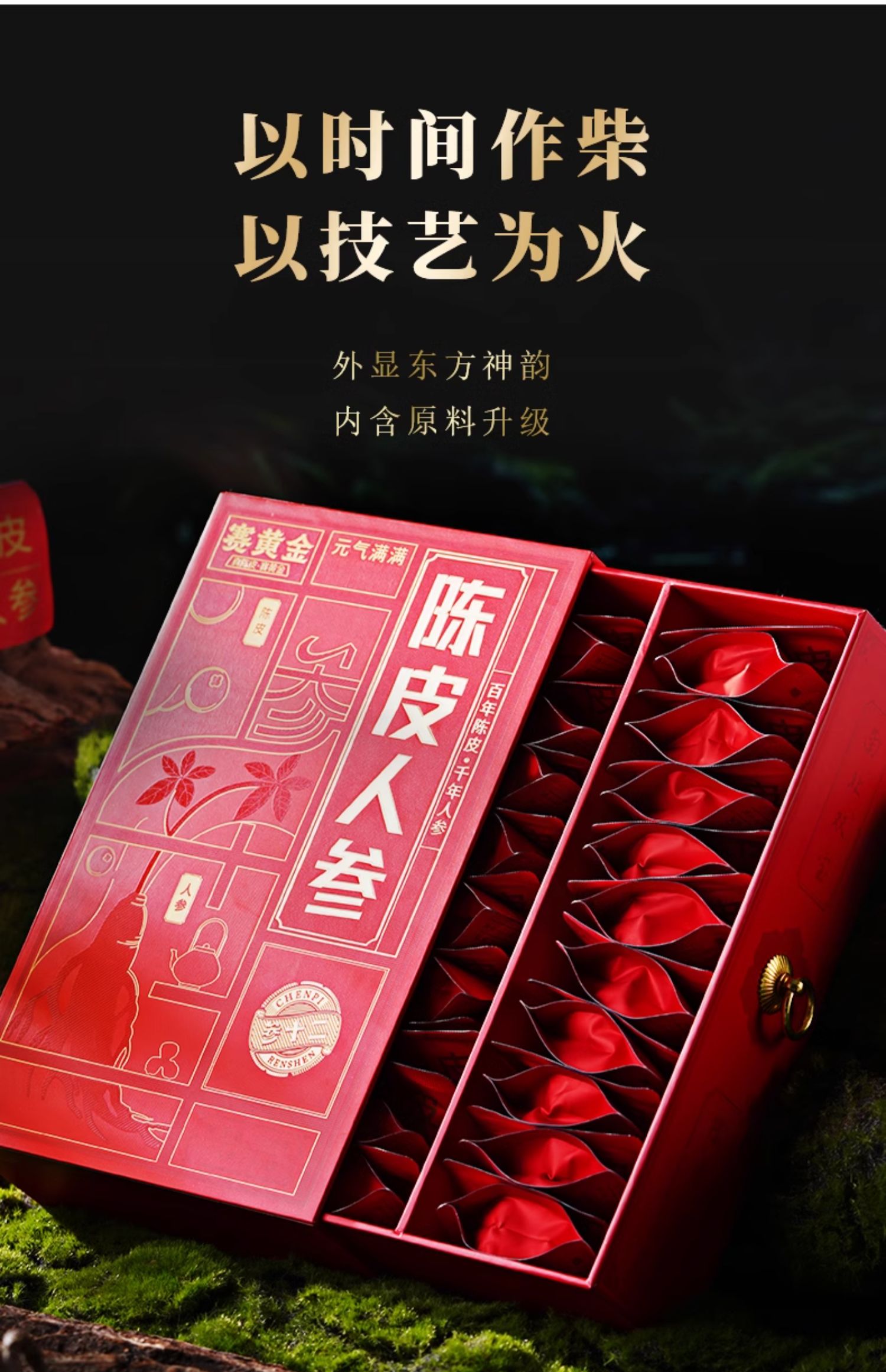 赛黄金陈皮人参新会产区陈皮人参参12系列100克送礼礼盒装 红色