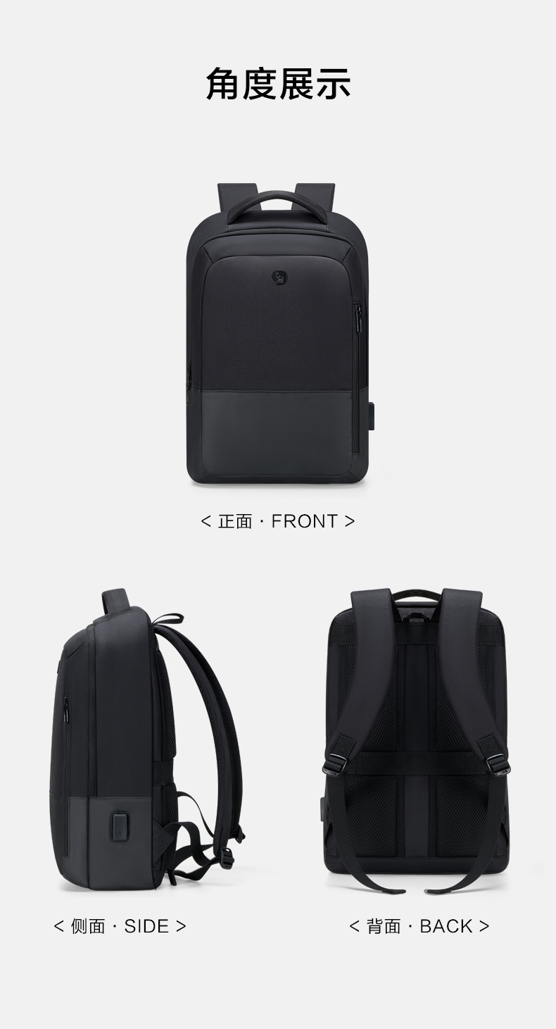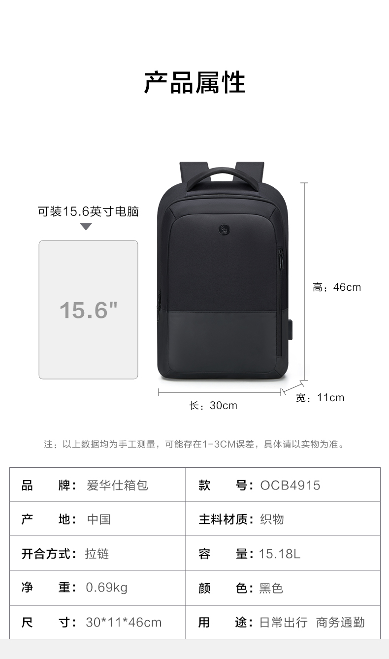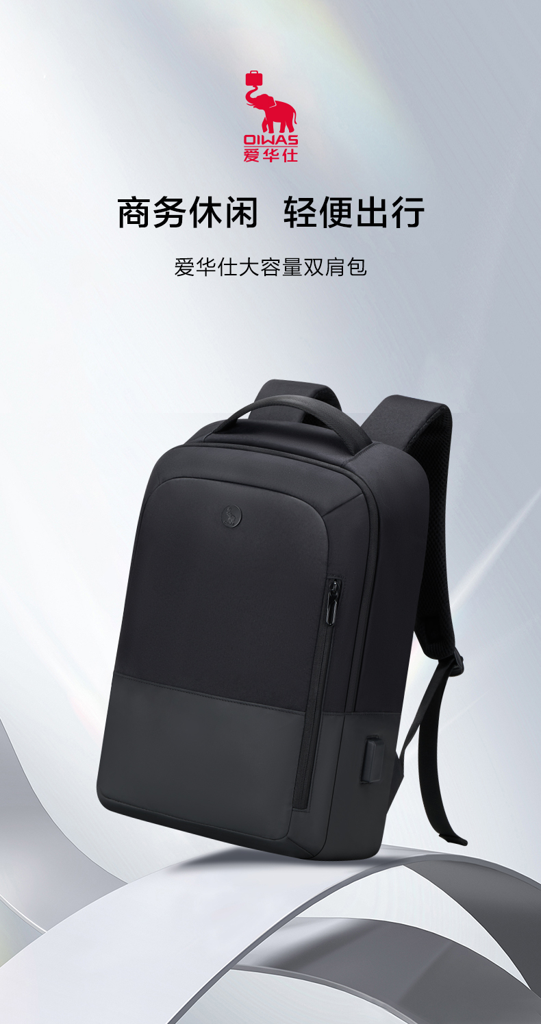 爱华仕(OIWAS)商务通勤15.6英寸双肩包 耐磨防泼 外置USB充电口可充电 OCB4915 个 黑色