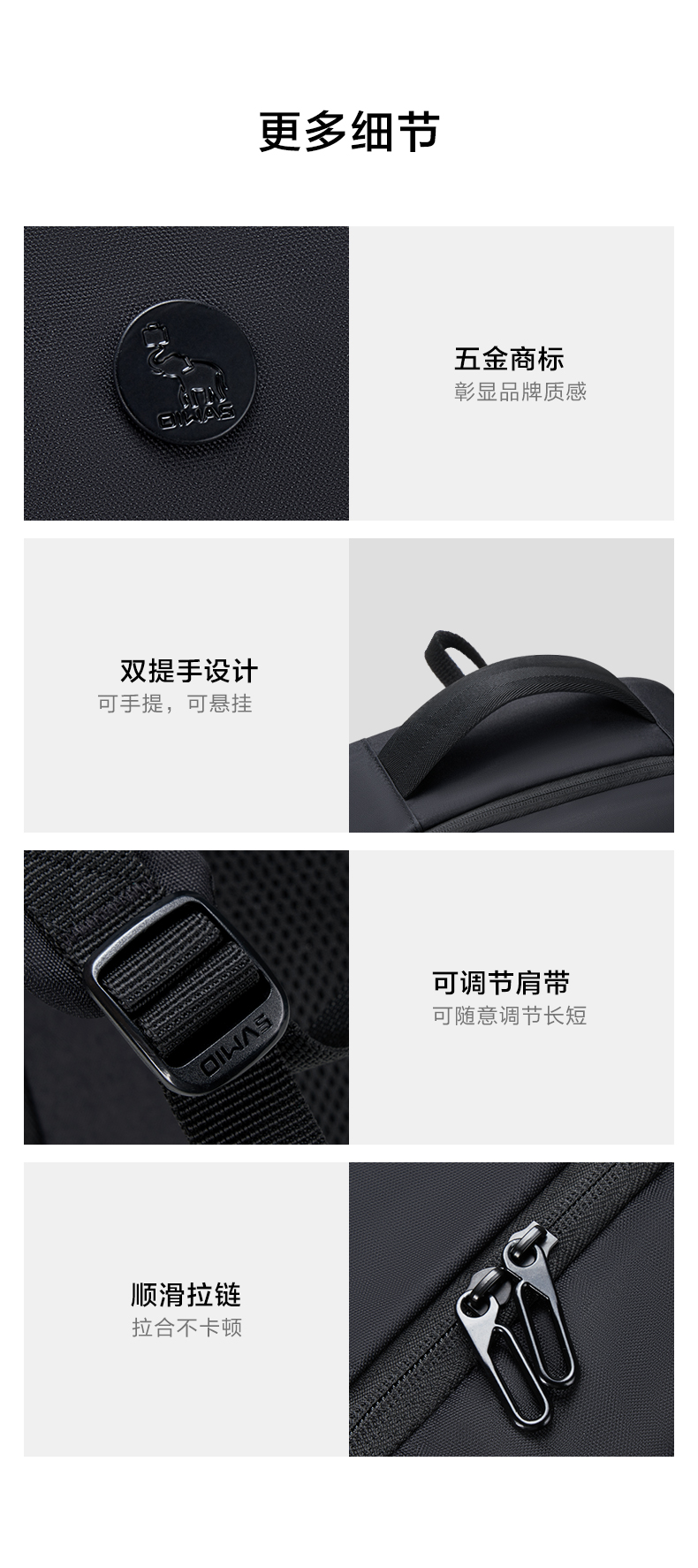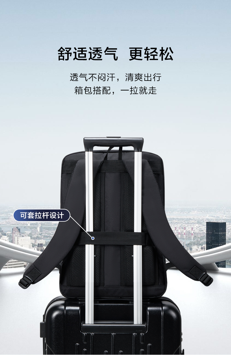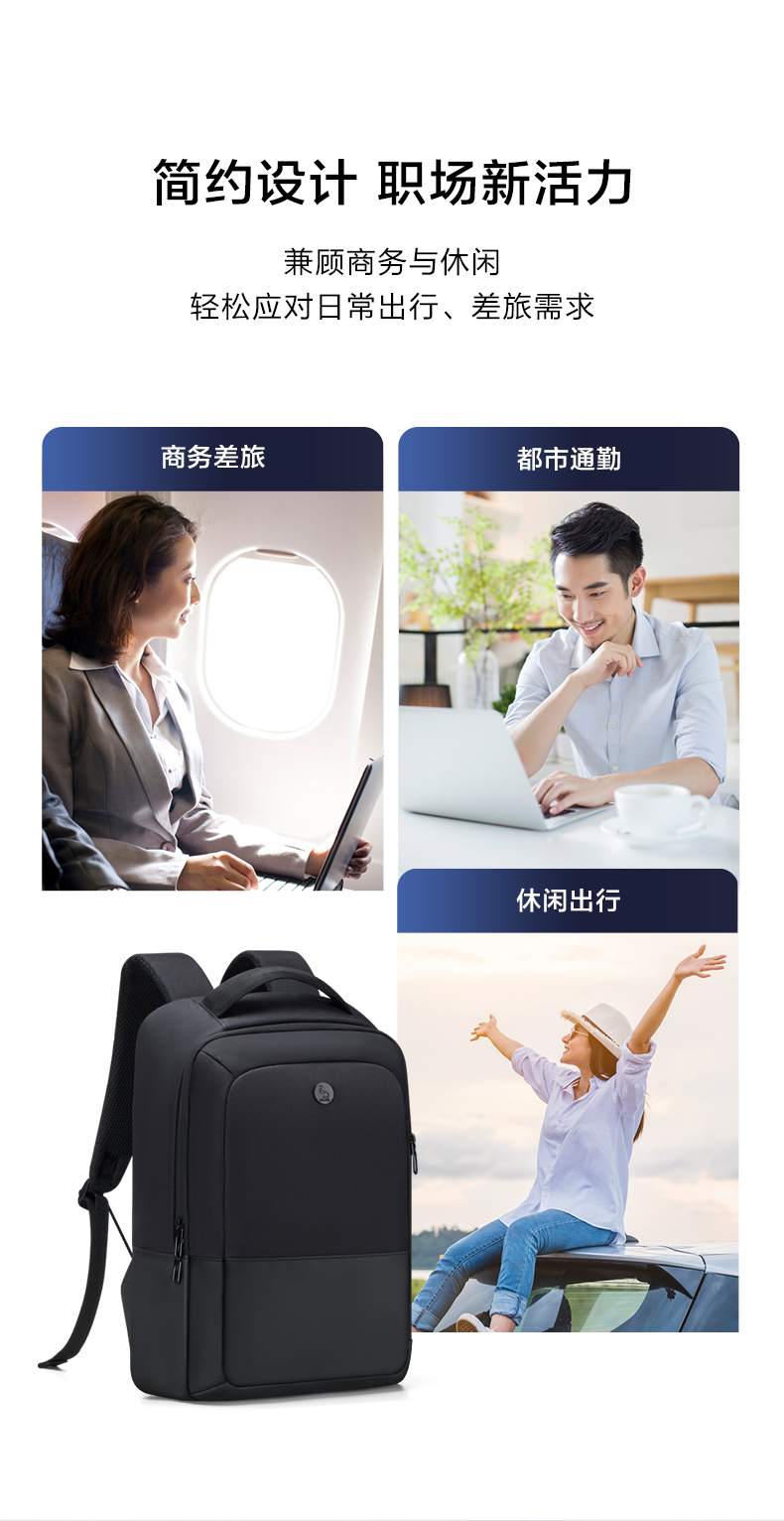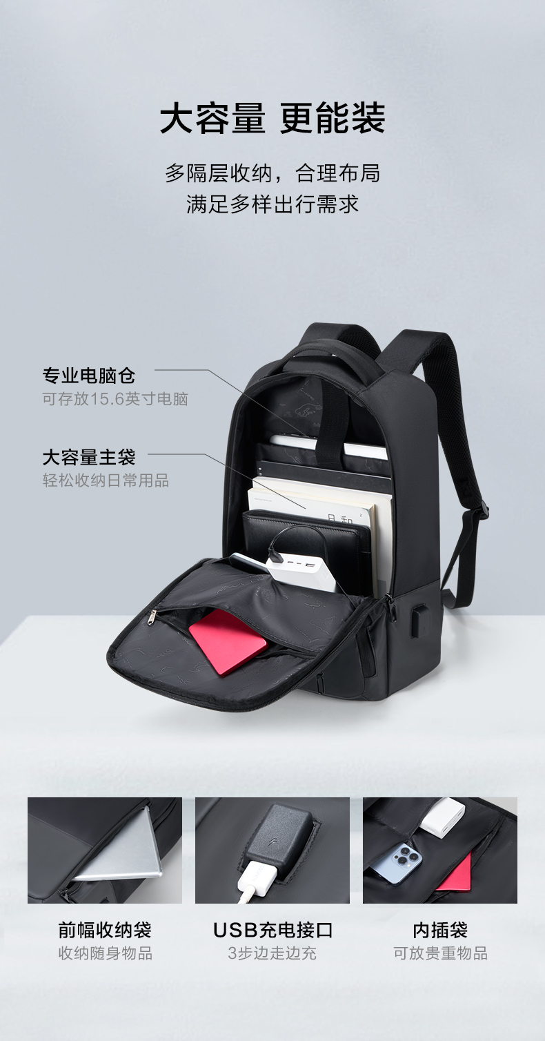 爱华仕(OIWAS)商务通勤15.6英寸双肩包 耐磨防泼 外置USB充电口可充电 OCB4915 个 黑色