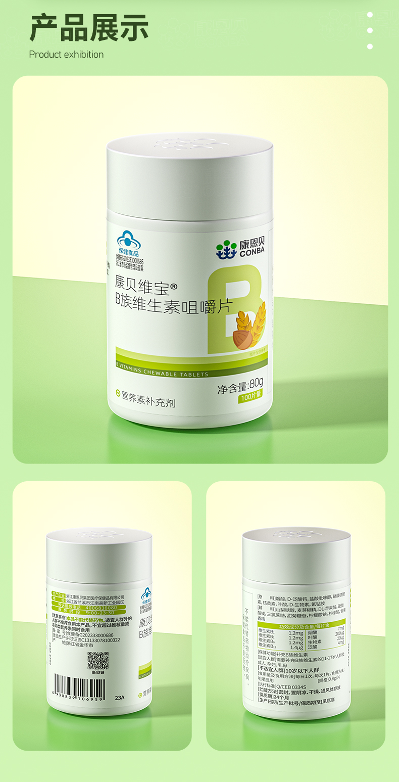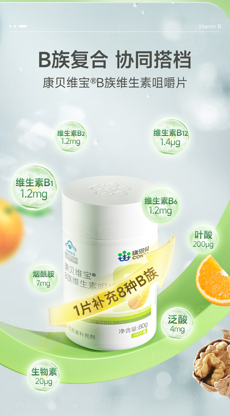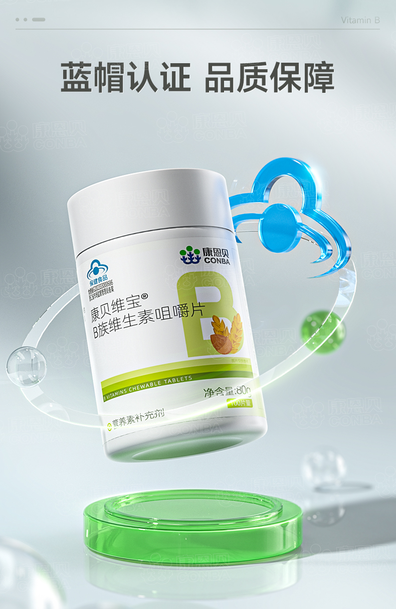 康贝维宝R多种B族维生素片(甜橙味) 0.8g*100片/瓶 柠绿色
