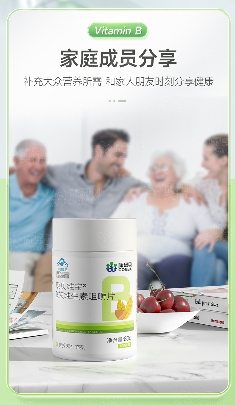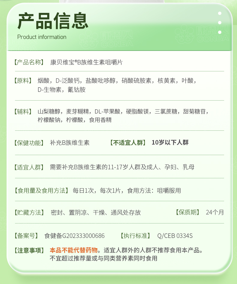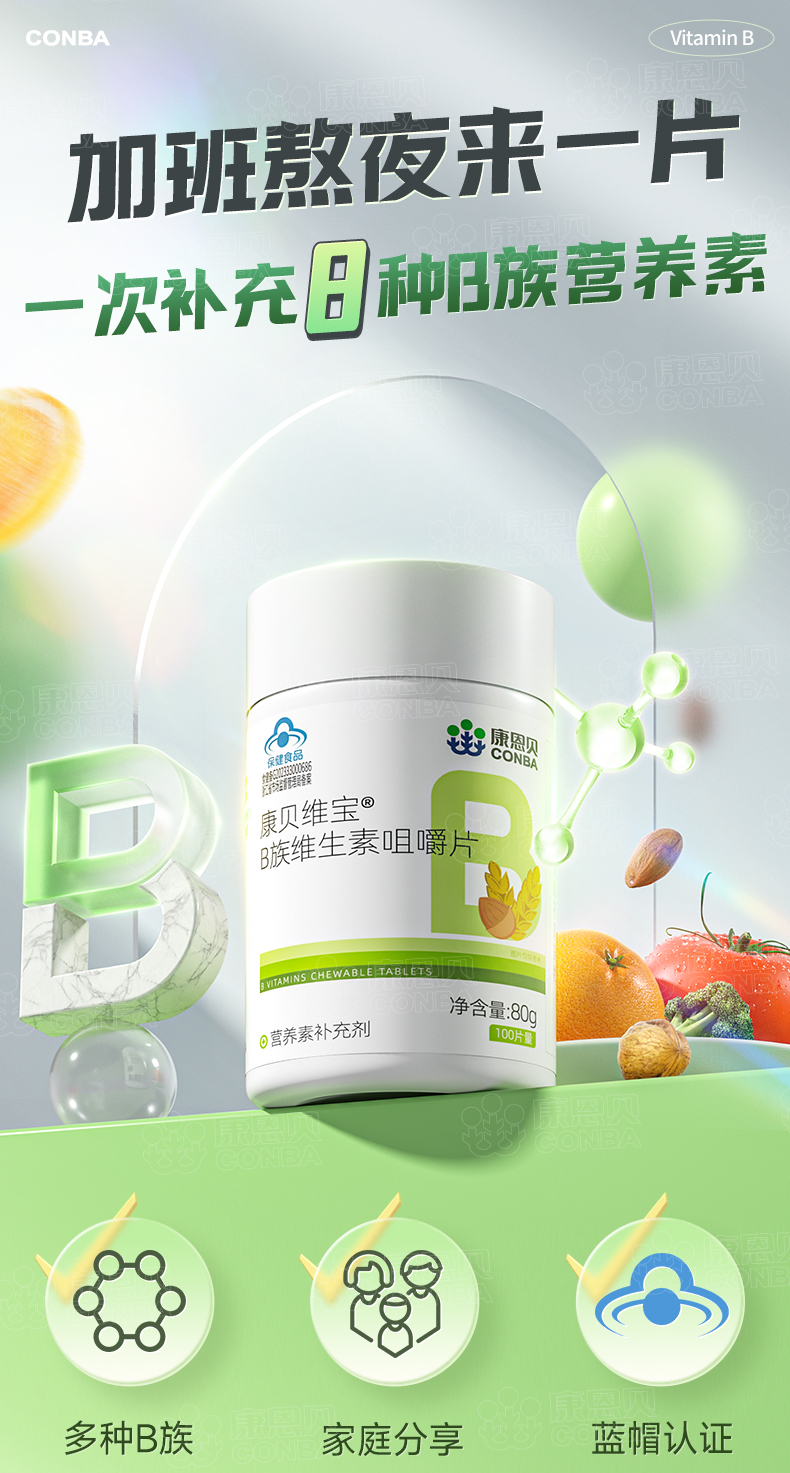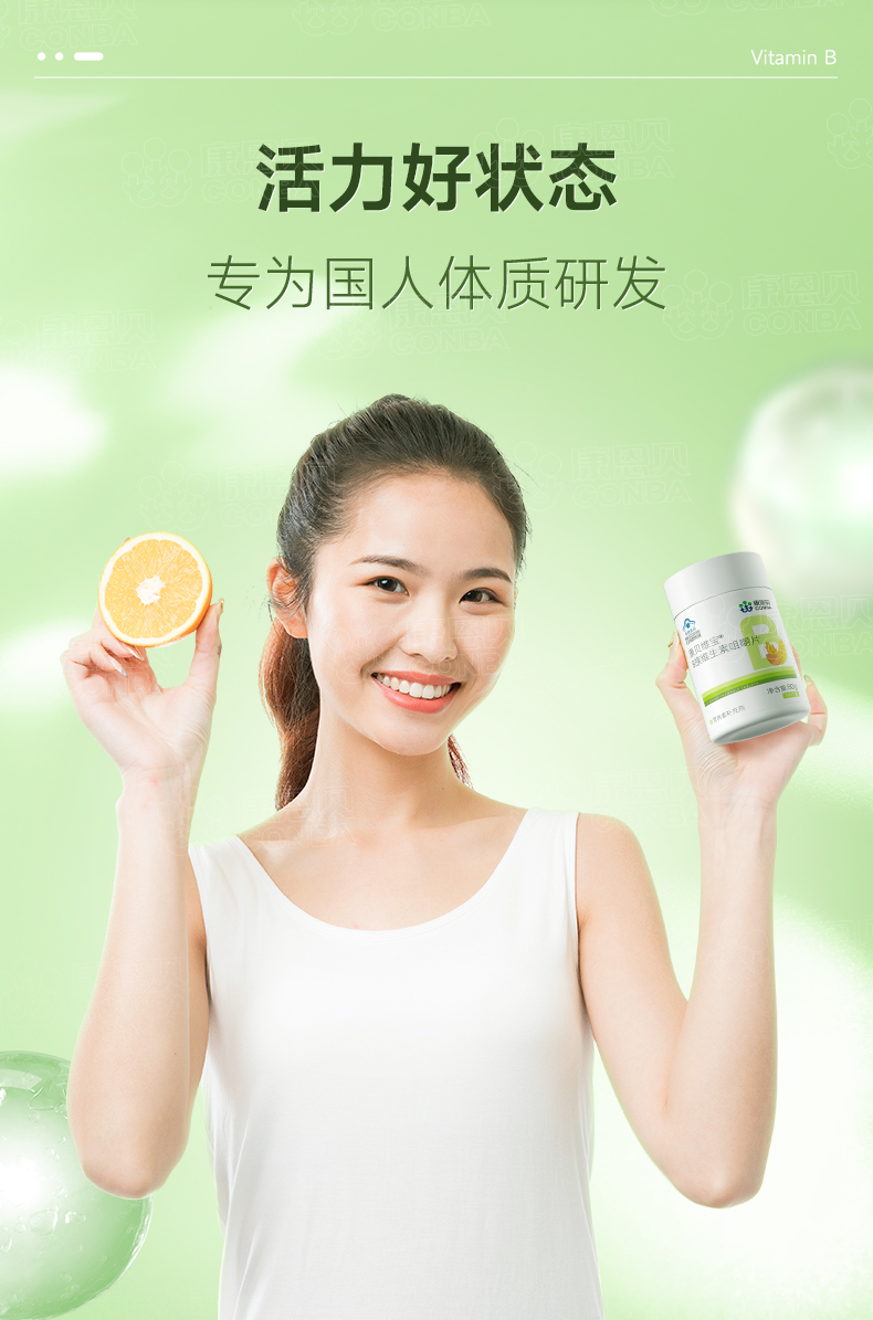 康贝维宝R多种B族维生素片(甜橙味) 0.8g*100片/瓶 柠绿色