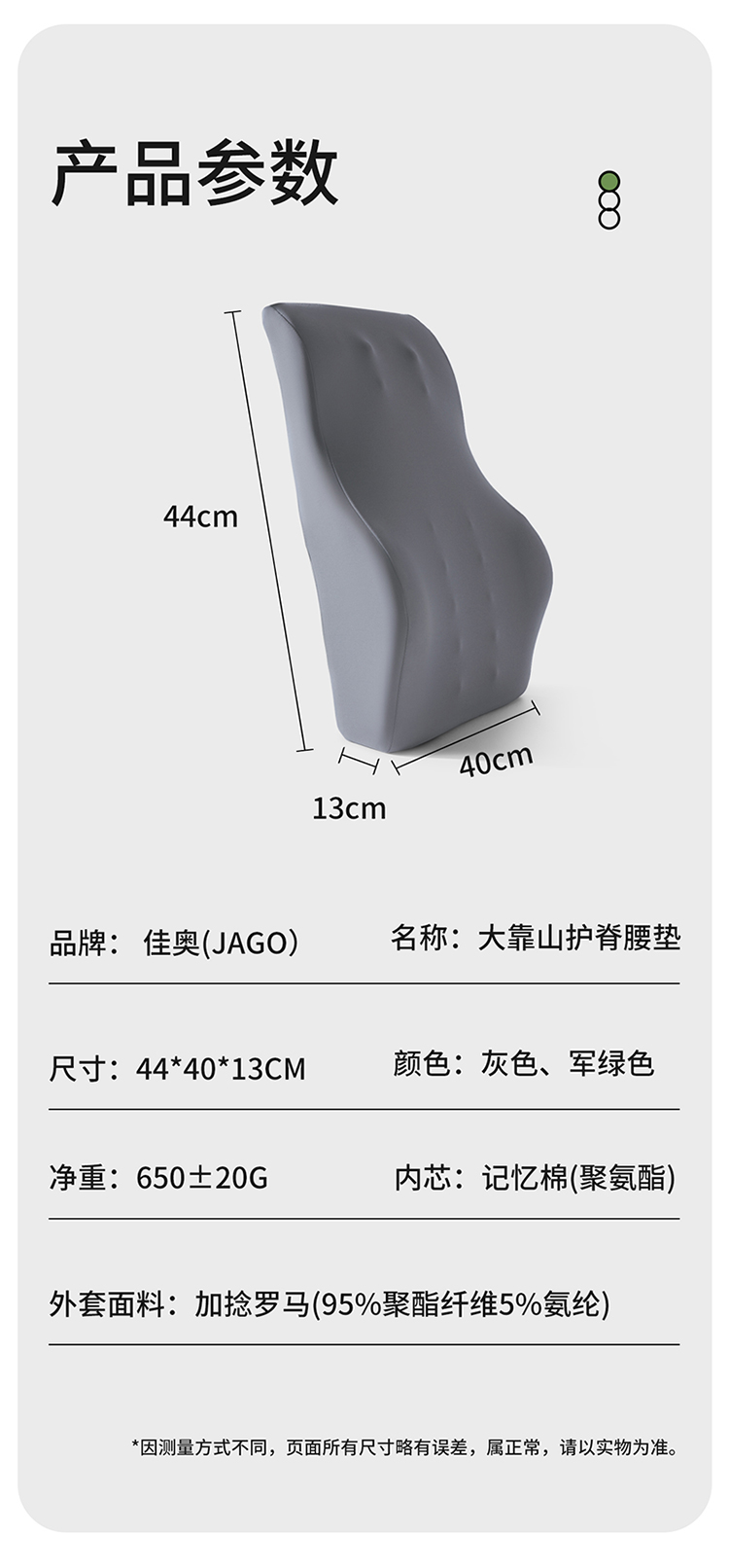 佳奥 大靠山护脊靠垫 240609J0100MB6(单位:个) 浅灰色