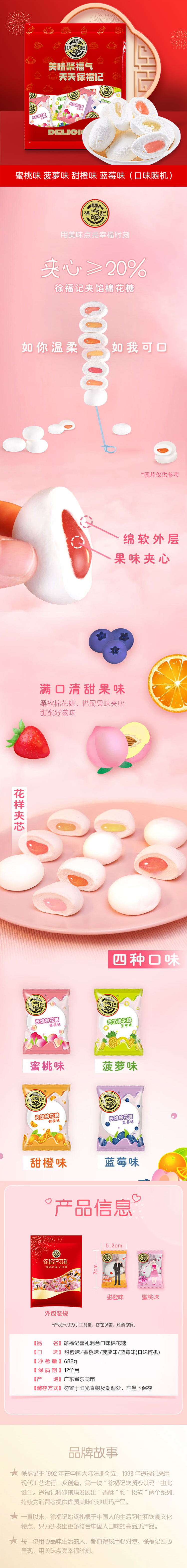 徐福记夹馅棉花糖(混合口味)688g/袋 枫叶色