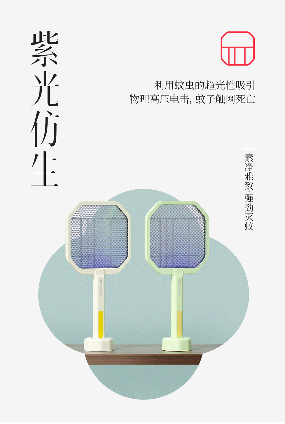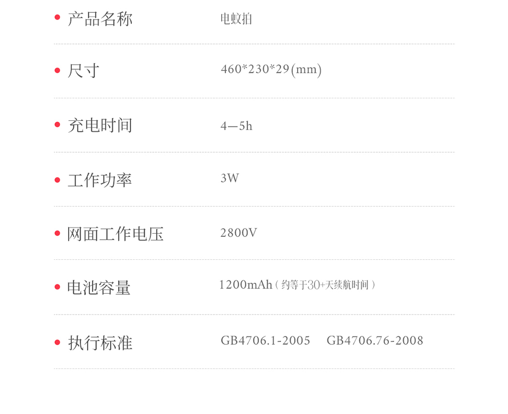 彩虹彩虹电蚊拍(二合一诱蚊底座充电款)6105(单位:把) 白色