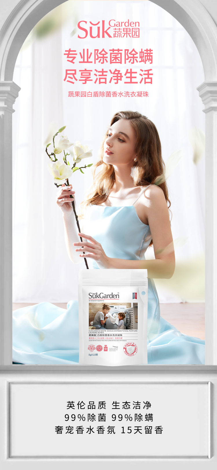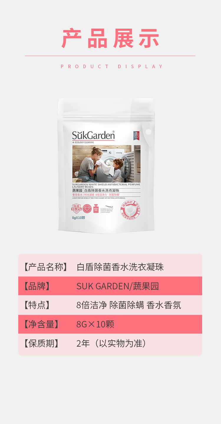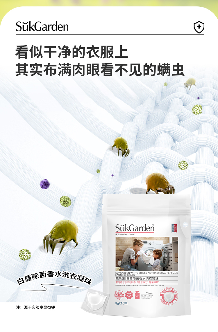 SukGarden蔬果园白盾除菌香水洗衣凝珠-10颗(袋装) 白色
