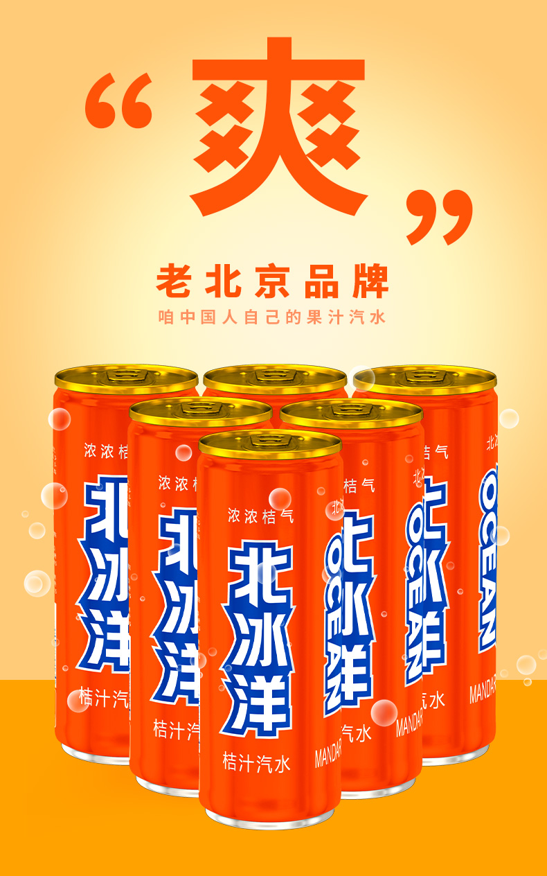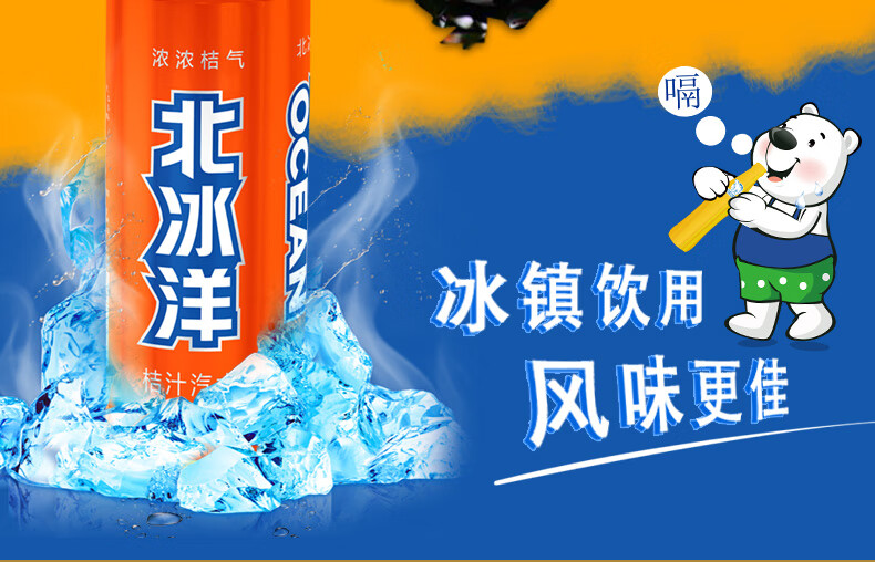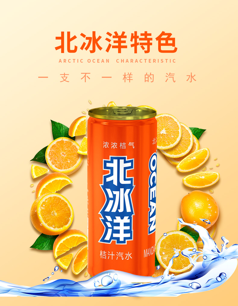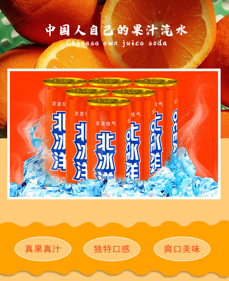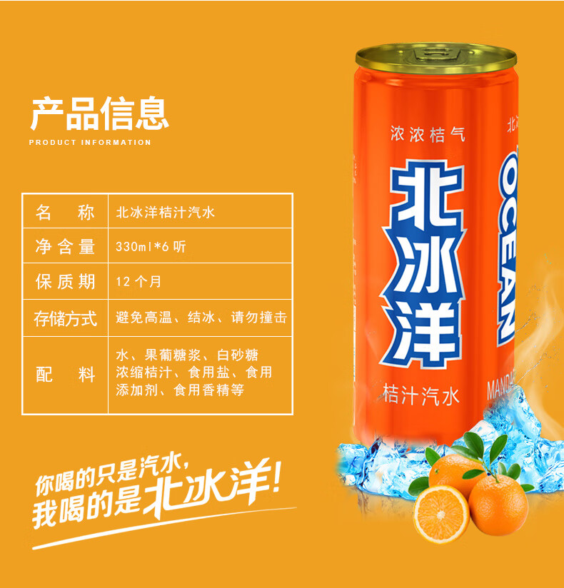 北冰洋 汽水饮料 果汁味饮品桔汁汽水碳酸饮料 塑封小包装330ml*6听(单位:箱) 橙色