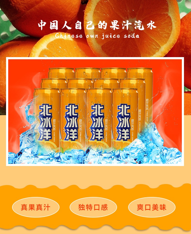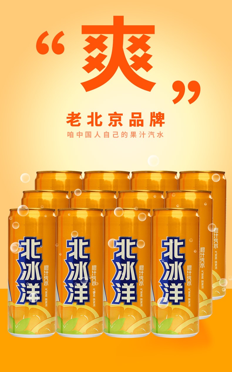北冰洋 汽水 橙汁汽水饮料果汁味饮品 碳酸饮料 塑封包装(单位:箱) 橙汁汽水 330ml*6听