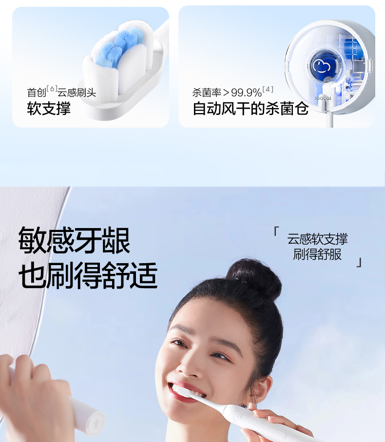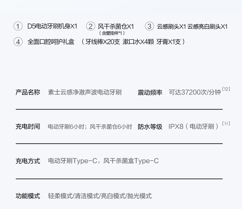 素士声波自动电动牙刷风D5 烘干杀菌云感刷(单位:台 白色