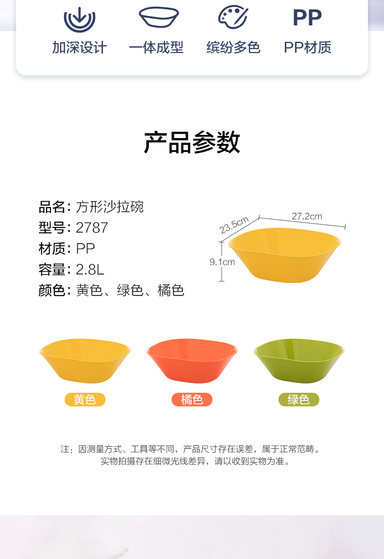 茶花方形沙拉碗2.5L2787 随机 随机