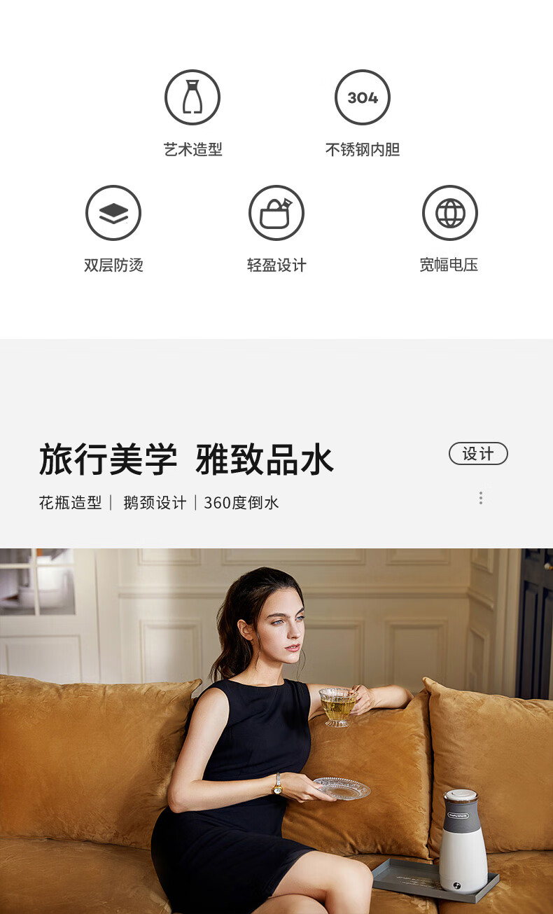 摩飞电器(MORPHY RICHARDS)便携式电热水壶迷你小容量开水壶MR6090 单位:个 珍珠灰