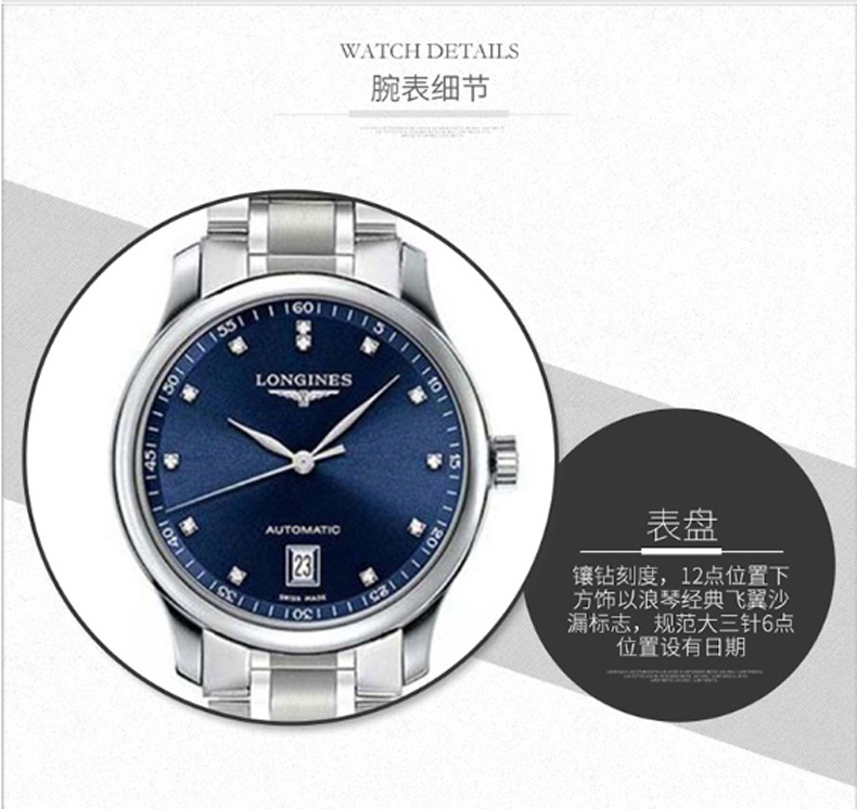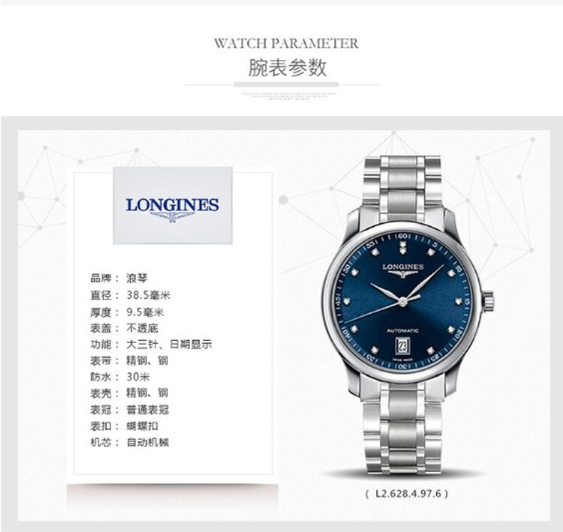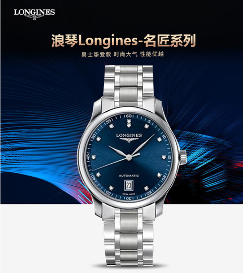 Longines浪琴 名匠系列自动机芯手表蓝盘钢带男表38.5mm L2.628.4.97.6 块 蓝色