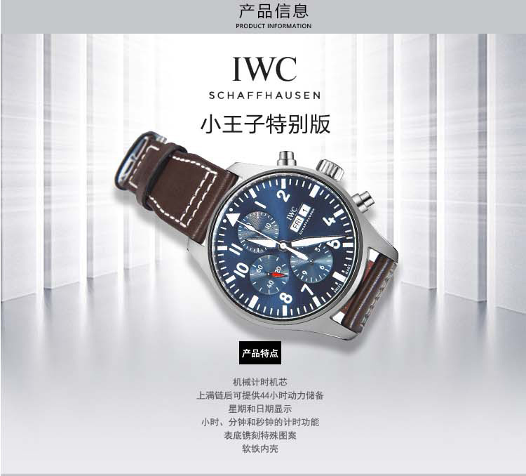 IWC万国 飞行员系列“小王子”特别版自动机械皮带男表 IW377714(单位:块) 蓝色