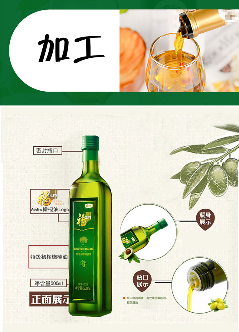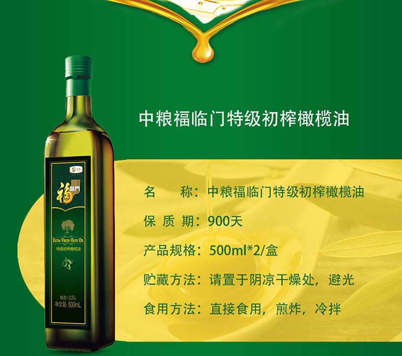 福临门特级初榨橄榄油500ml*2瓶(礼盒)单位:盒 绿色