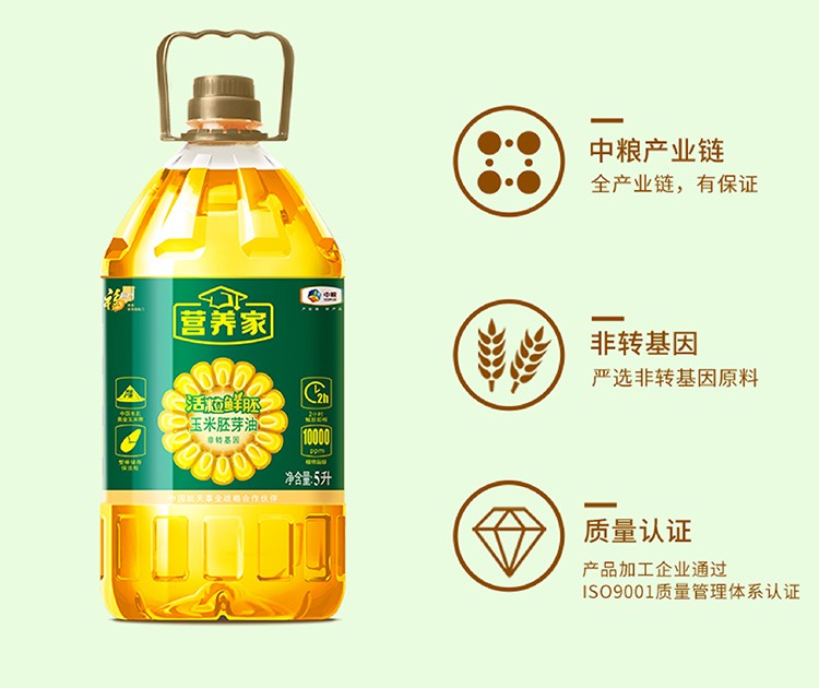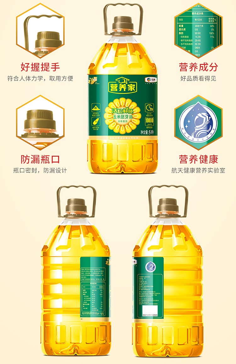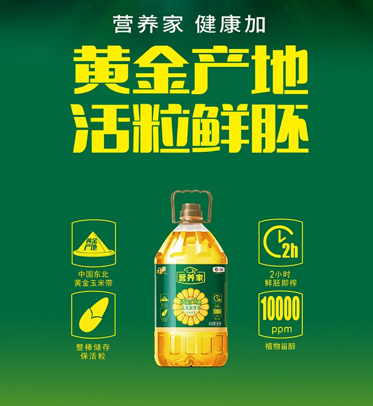 福临门营养家活粒鲜胚玉米油5升 单位:桶 黄色