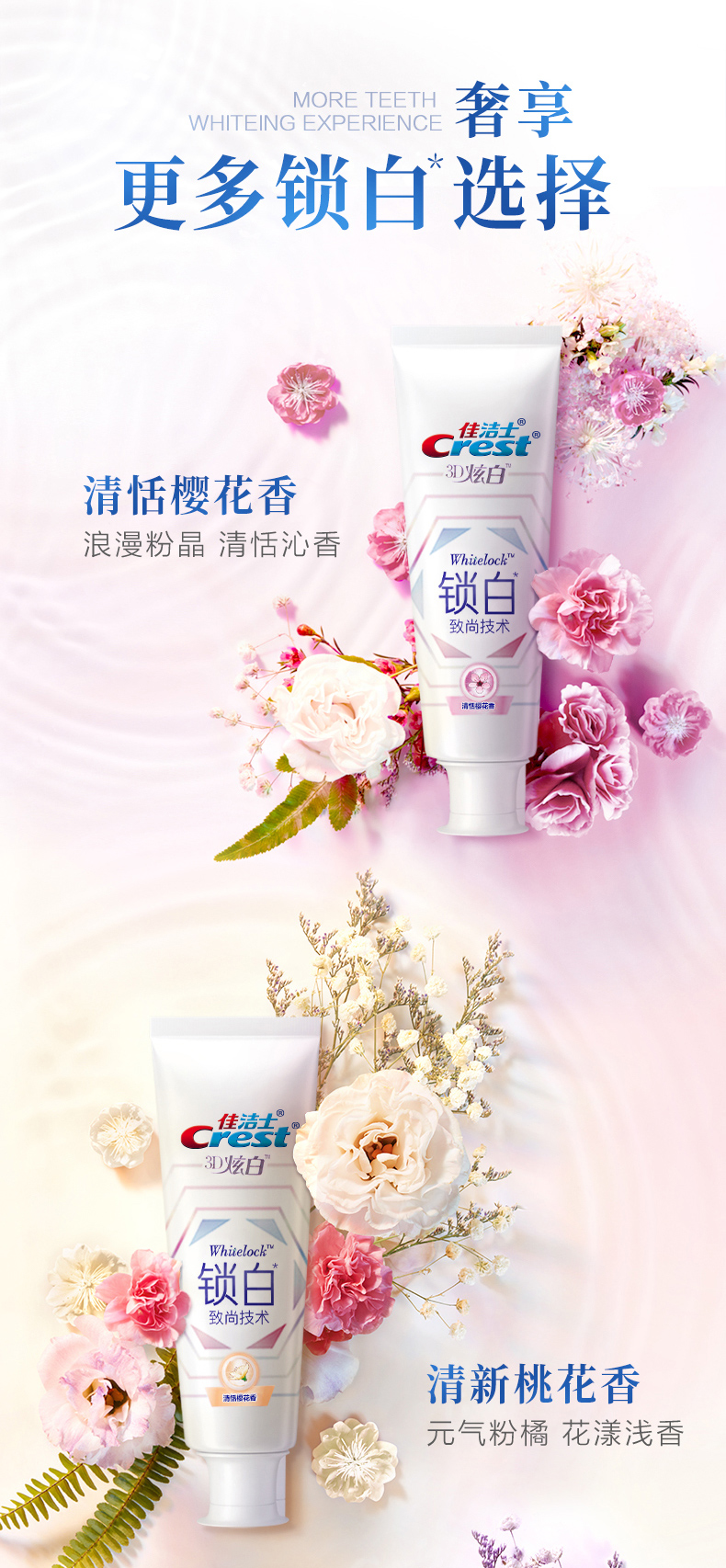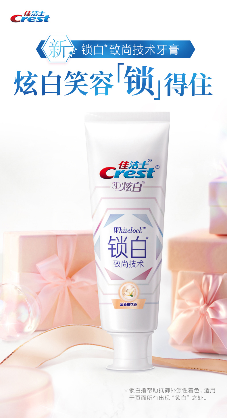 佳洁士锁白致尚技术牙膏(清恬樱花香、桃花香、睡莲、矿物盐、竹炭香味随机)120g(新疆、西藏、青海、内蒙、甘肃、宁夏不发货) 白色 白色