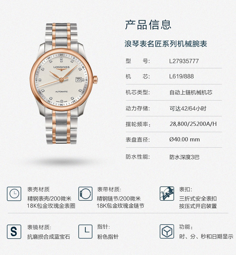 Longines浪琴 名匠系列自动机械男士腕表(40mm) L2.793.5.77.7(单位:块) 银色