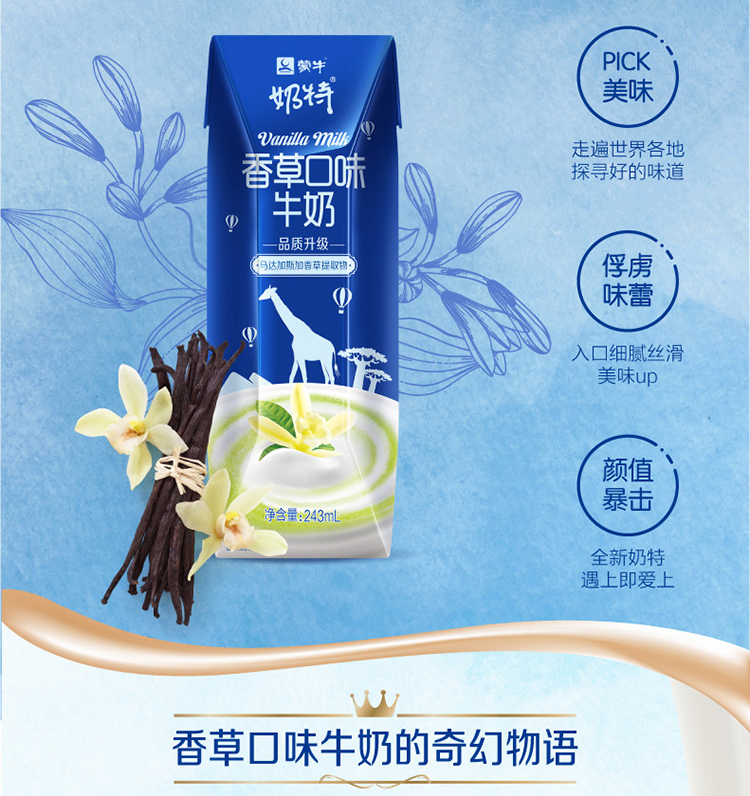 蒙牛奶特香草口味牛奶利乐钻243ml×12盒/箱 宝石蓝
