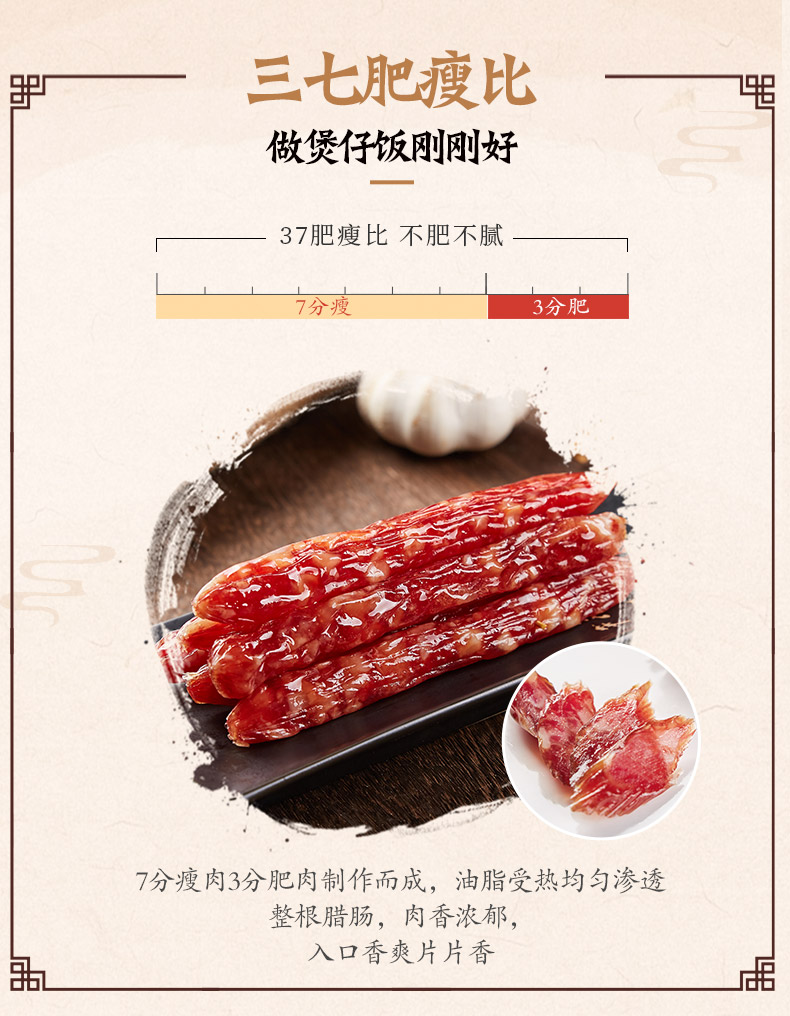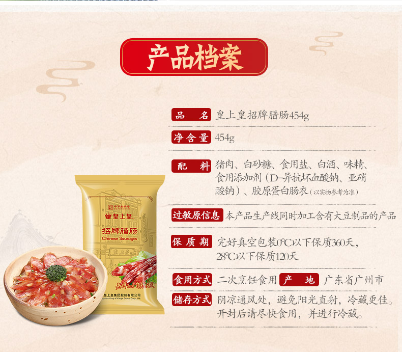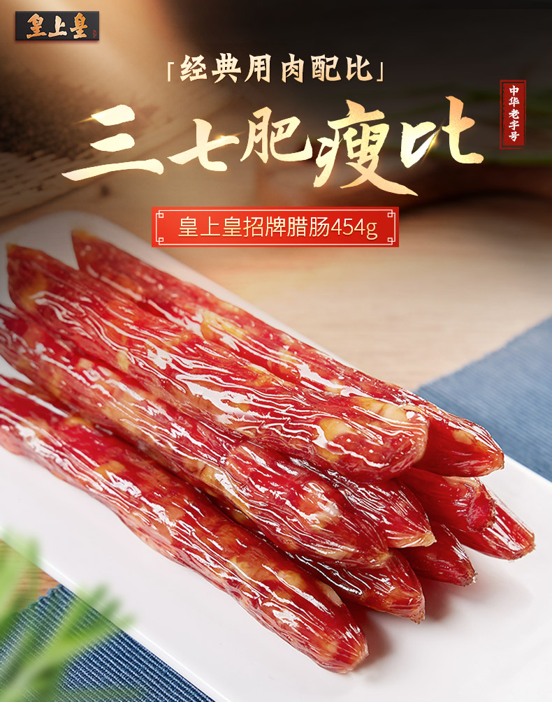 皇上皇 招牌腊肠454g 7分瘦中华老字号国企经营腊味广式腊肠香肠广东特产 金色 金色