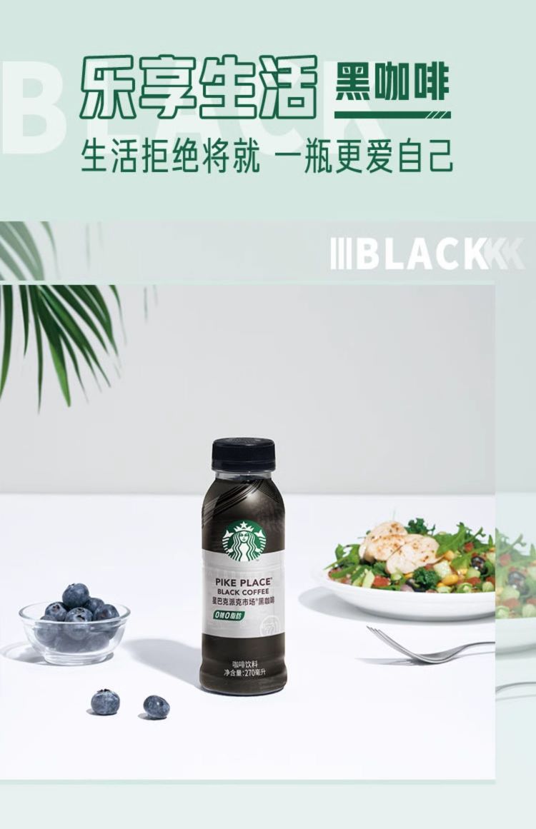 星巴克派克市场黑咖啡咖啡饮料1*270ml*15罐 黑色 黑色
