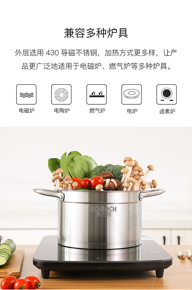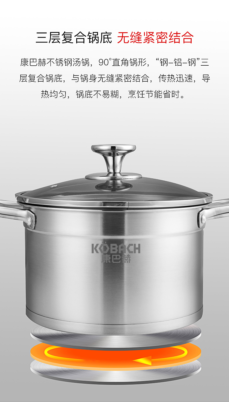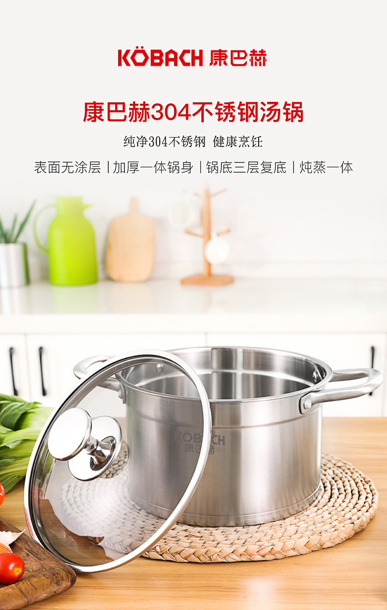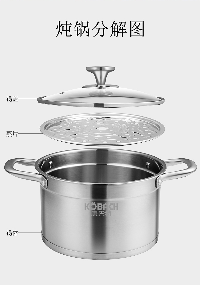 康巴赫(KBH)不锈钢汤锅22cm TOUC22A1 (14050421)(单位:个) 不锈钢色