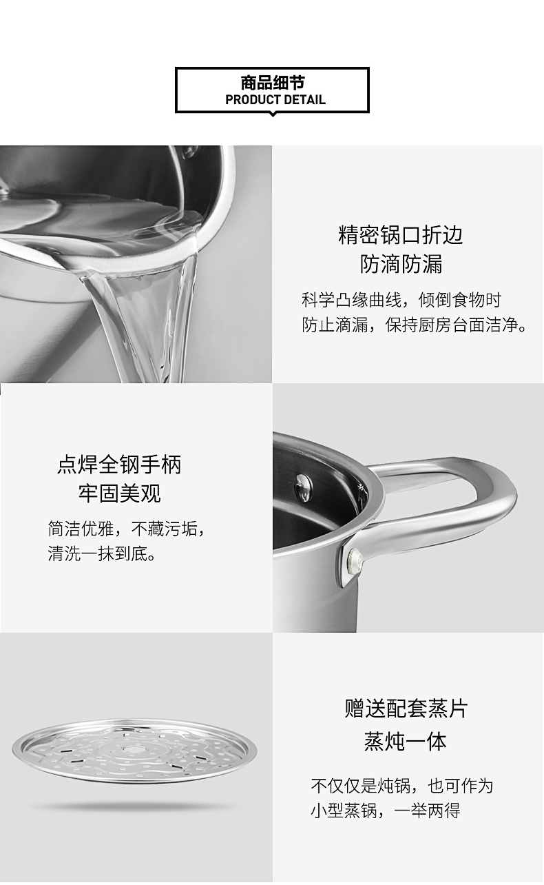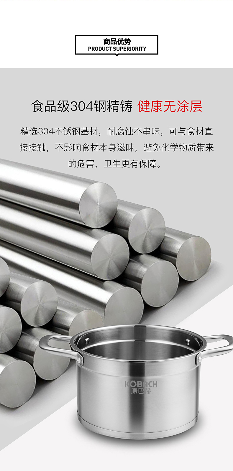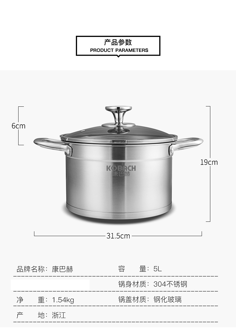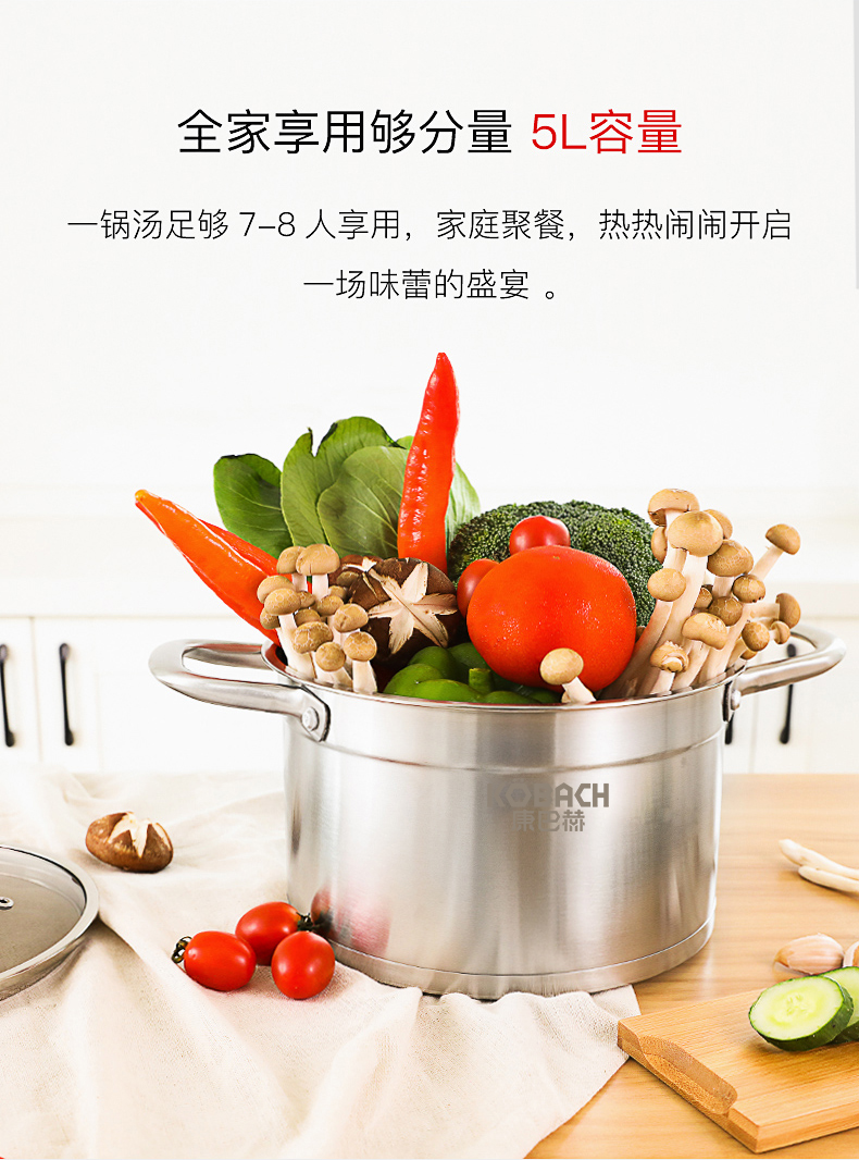 康巴赫(KBH)不锈钢汤锅22cm TOUC22A1 (14050421)(单位:个) 不锈钢色