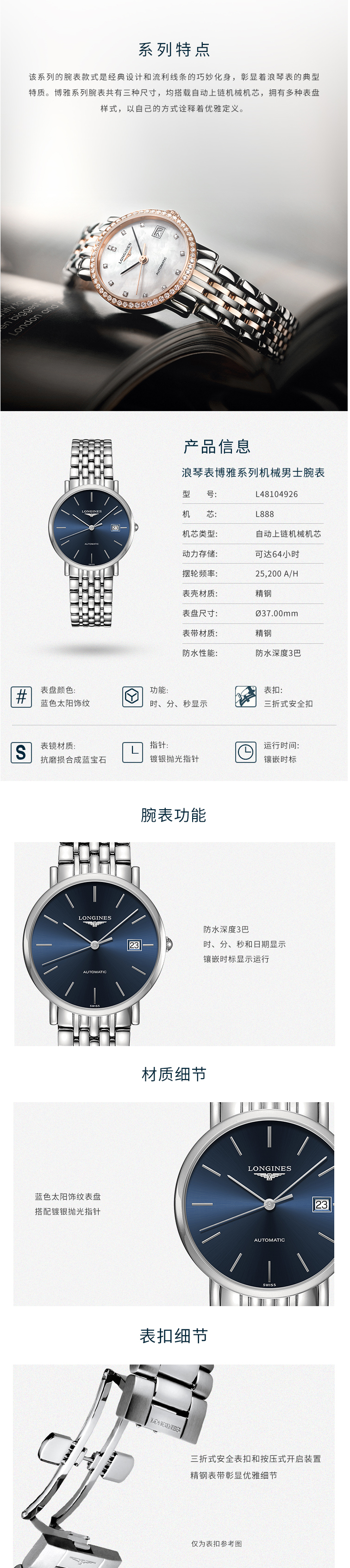 Longines浪琴 博雅系列自动机械男士腕表(37mm) L4.810.4.92.6(单位:块) 蓝色