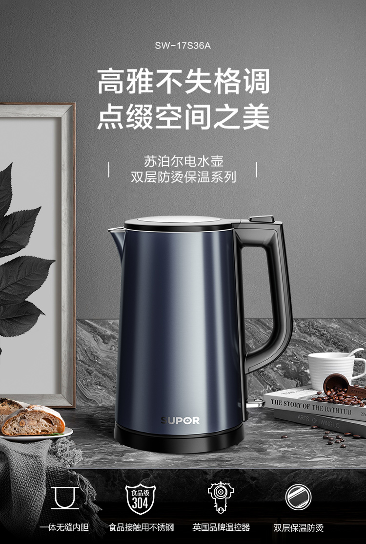 苏泊尔(SUPOR)1.7L电水壶SW-17S36A/台 蓝色