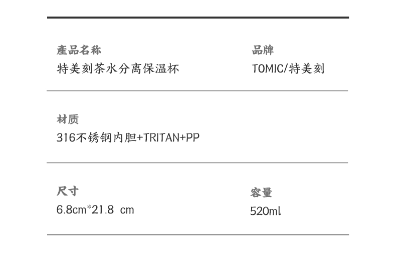 特美刻(TOMIC)茶水分离保温杯 TW60020 520ML(单位:只) 蓝色