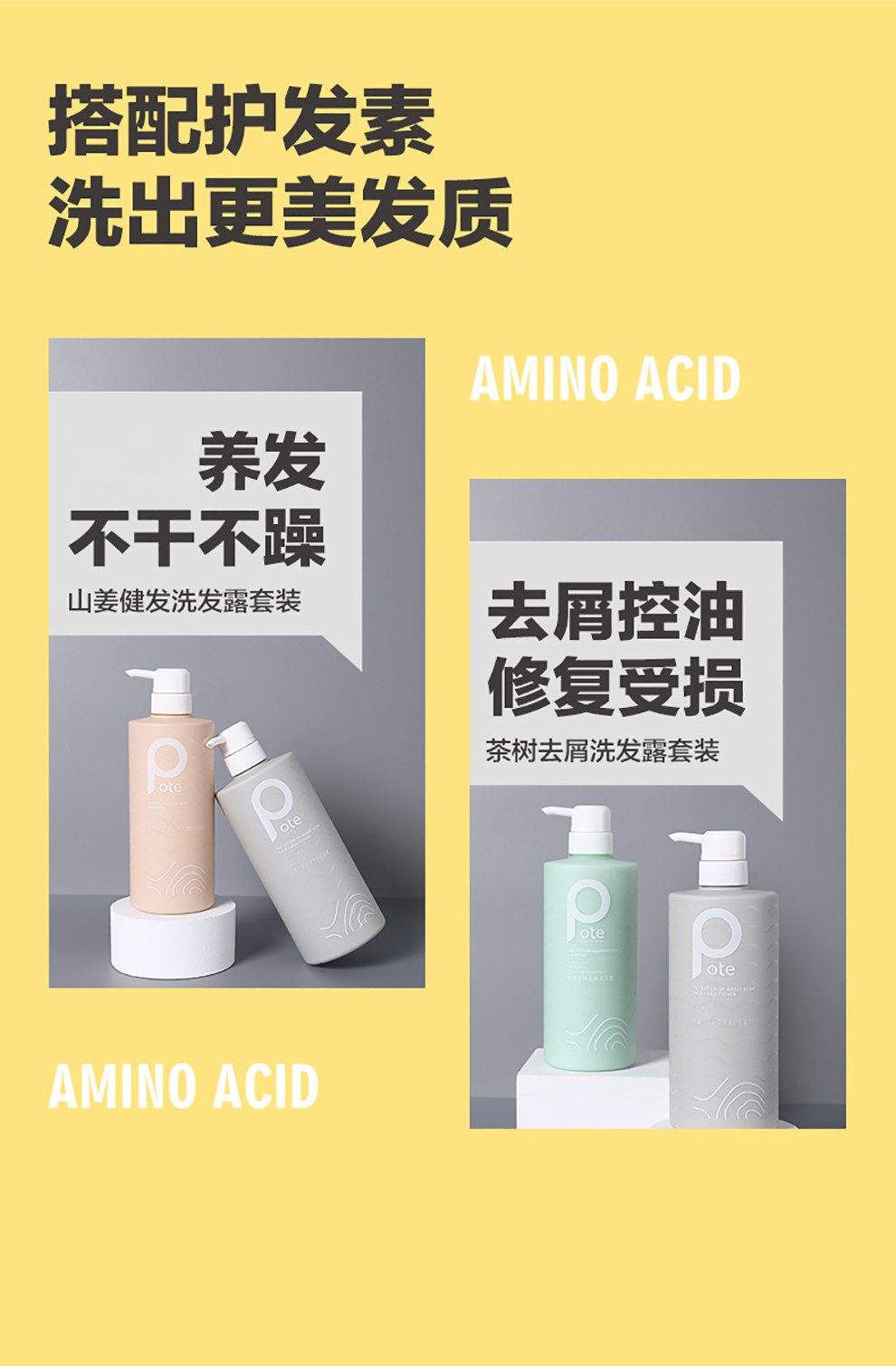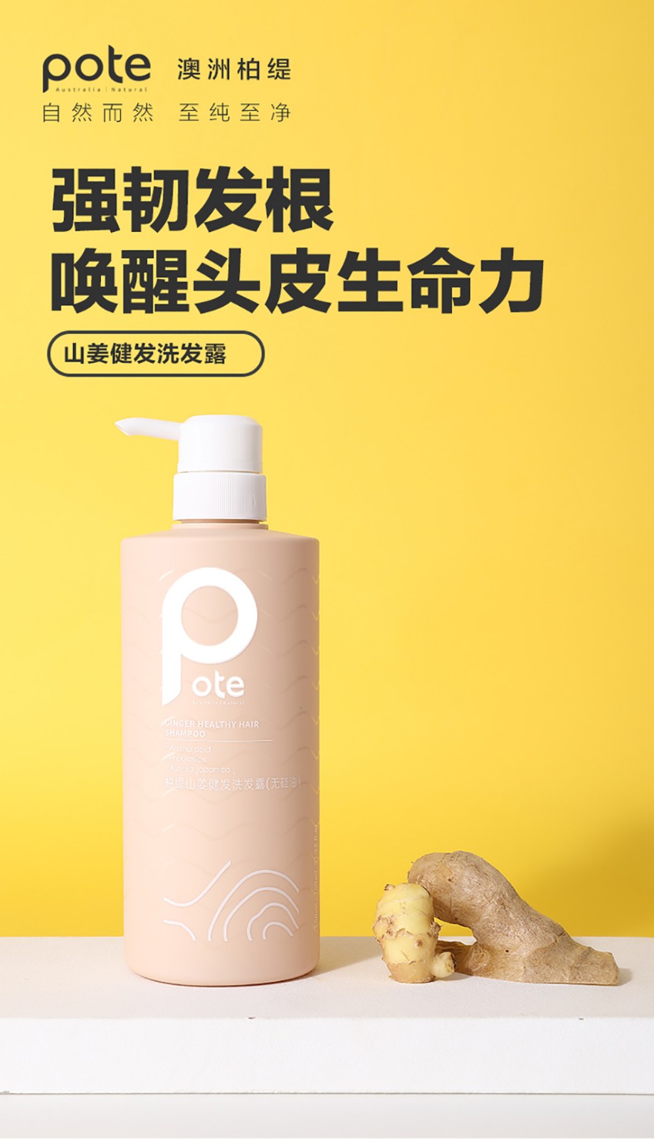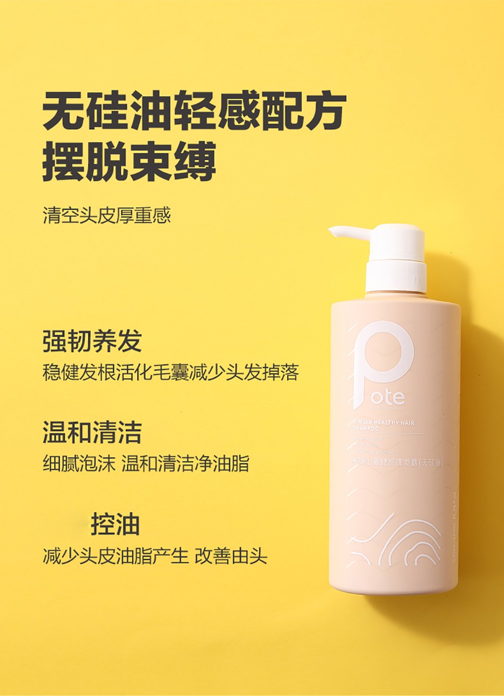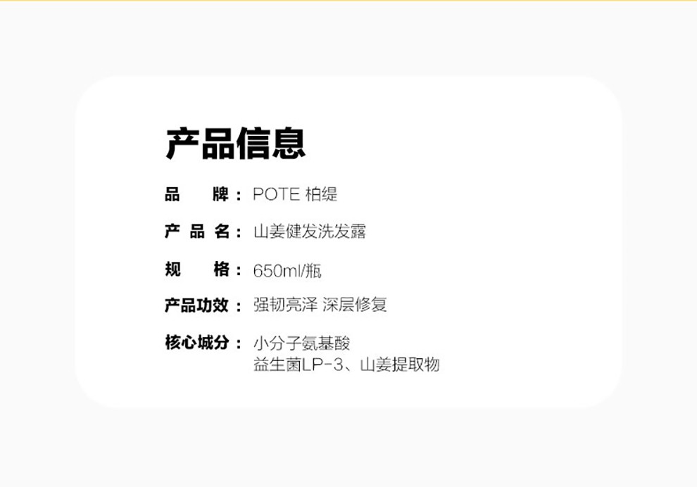 柏缇 (POTE) 山姜健发洗发露(无硅油)650ml/瓶 自然色