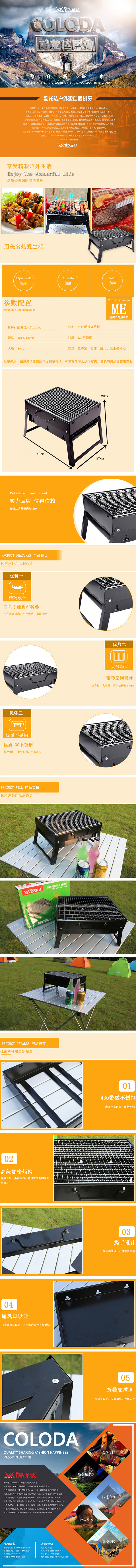 酷龙达(Coloda) 户外烧烤炉(手提式)CL-S001/个 黑色