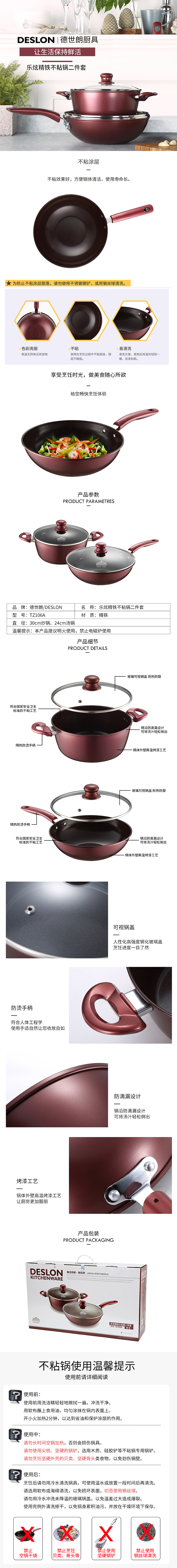 乐炫精铁不粘锅二件套 DFS-TZ106A 图片色 图片色