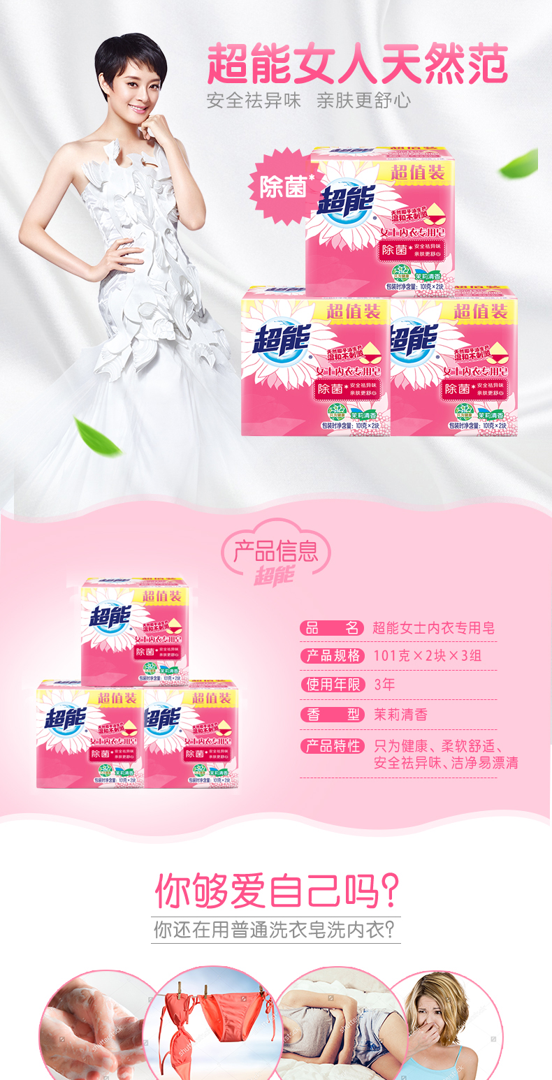超能女士内衣专用皂(新疆、青海、西藏不发货) 101g*2块*3组