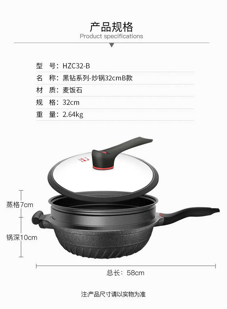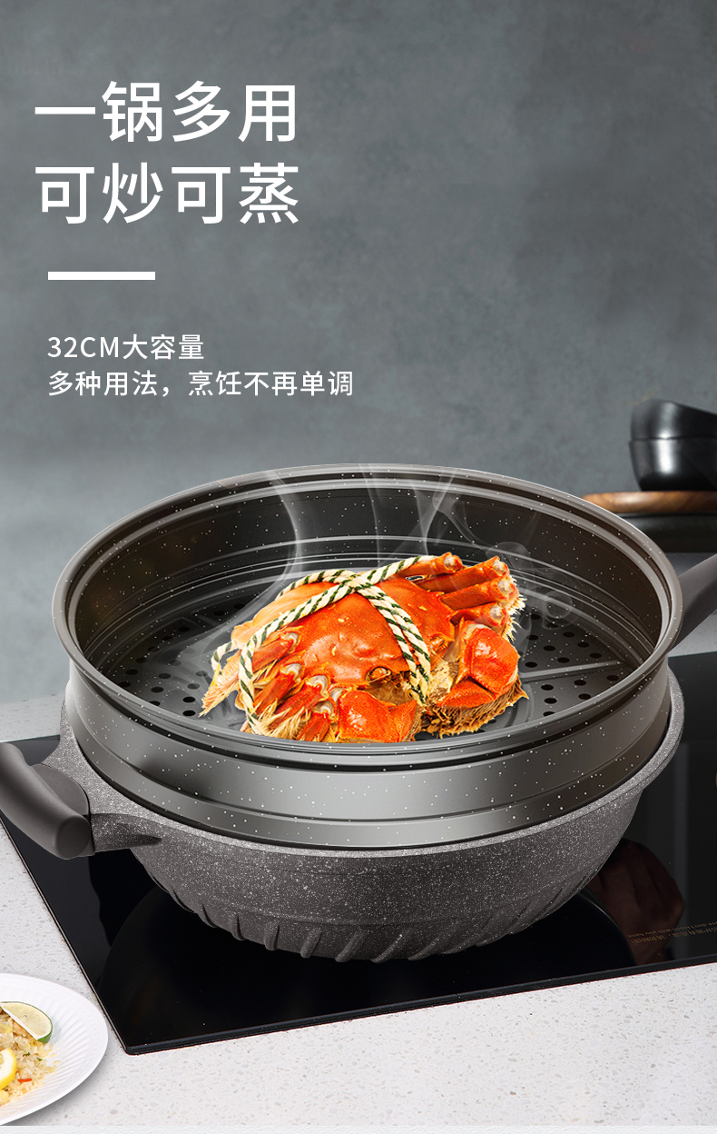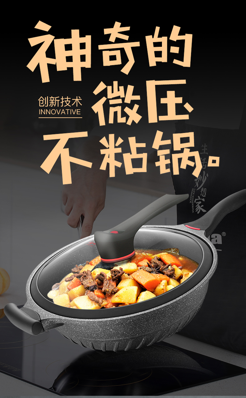 欧美达黑钻系列-微压炒锅32cmA款HZC32-B 黑色