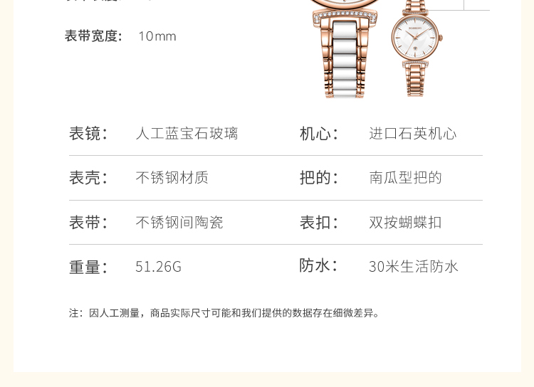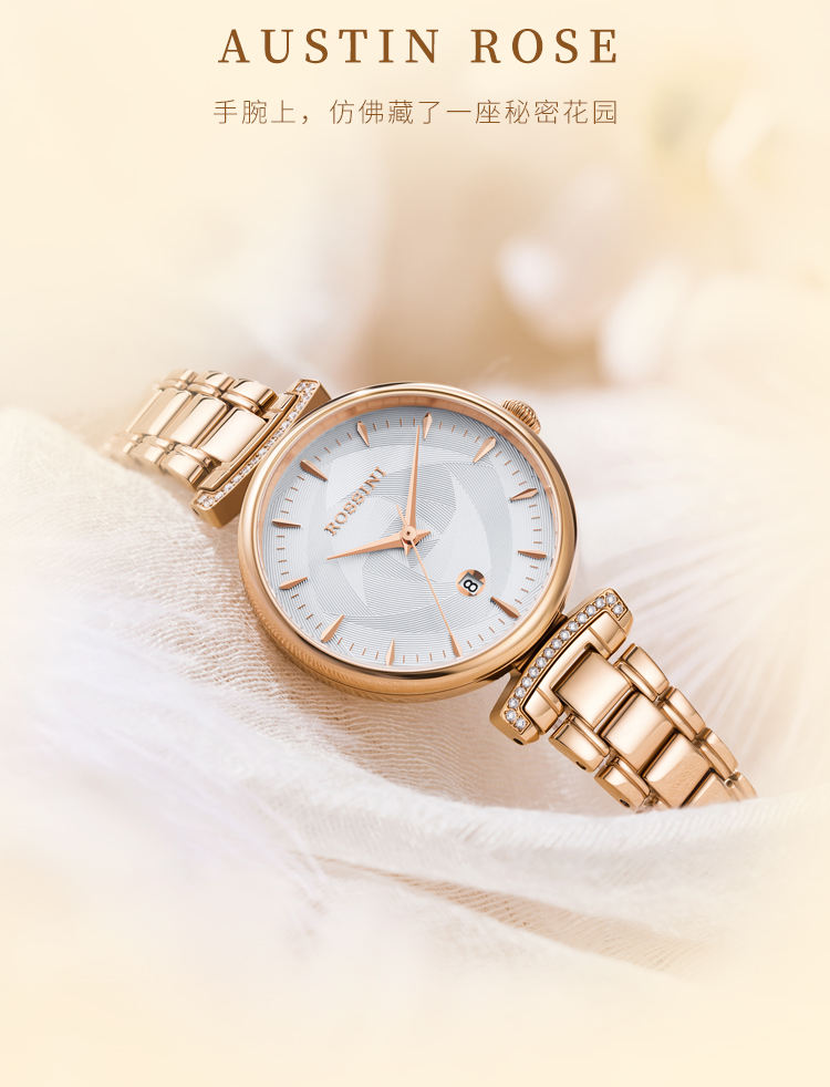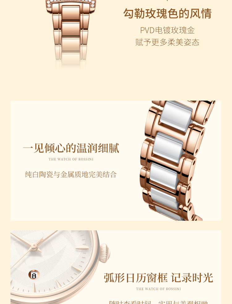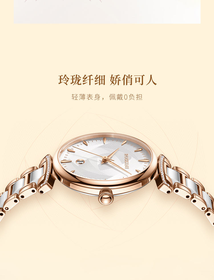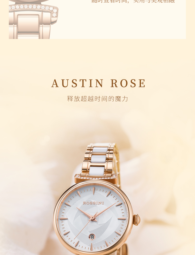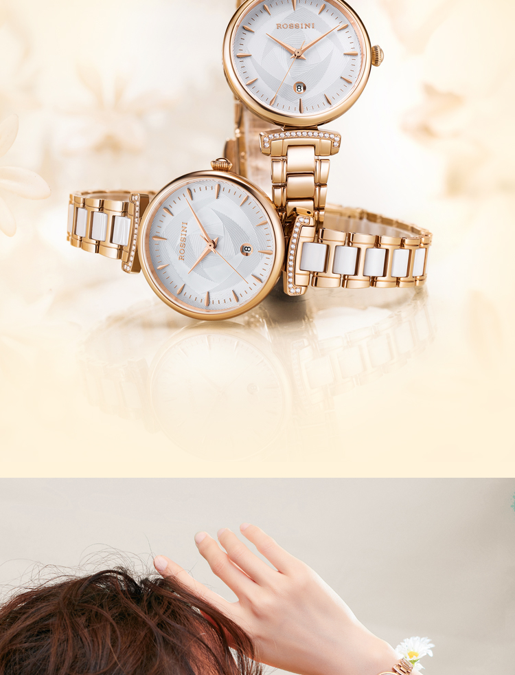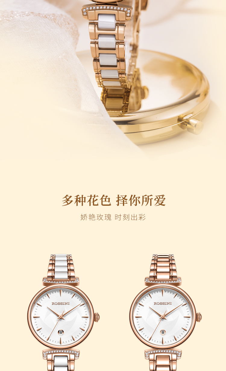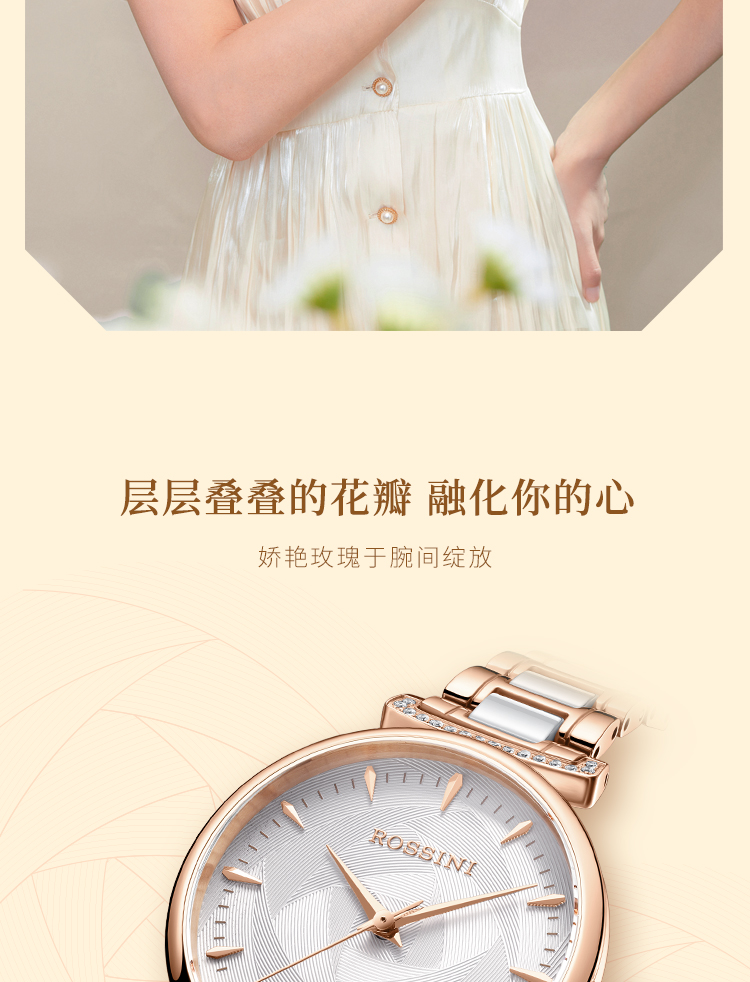 Rossini罗西尼 典美系列 石英手表白盘玫瑰金钢带女表50034G01B(单位:个) 白色