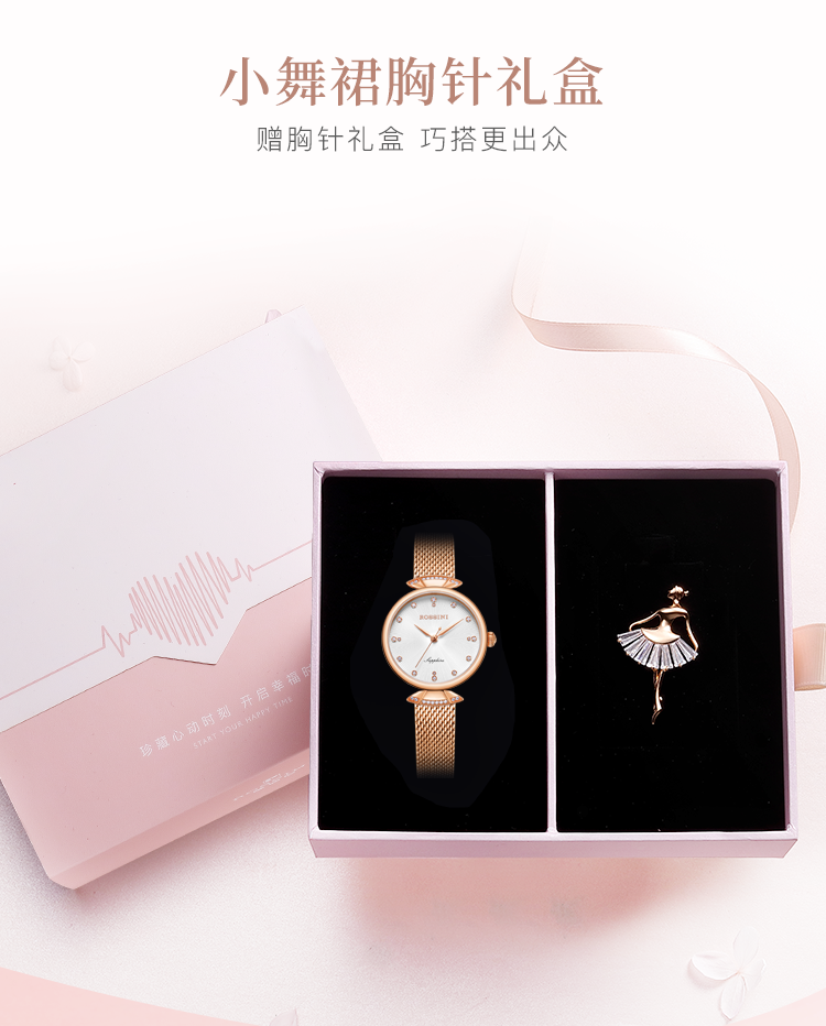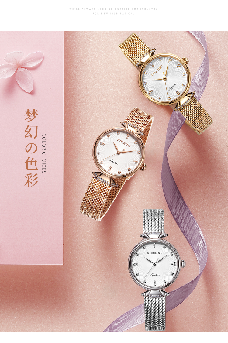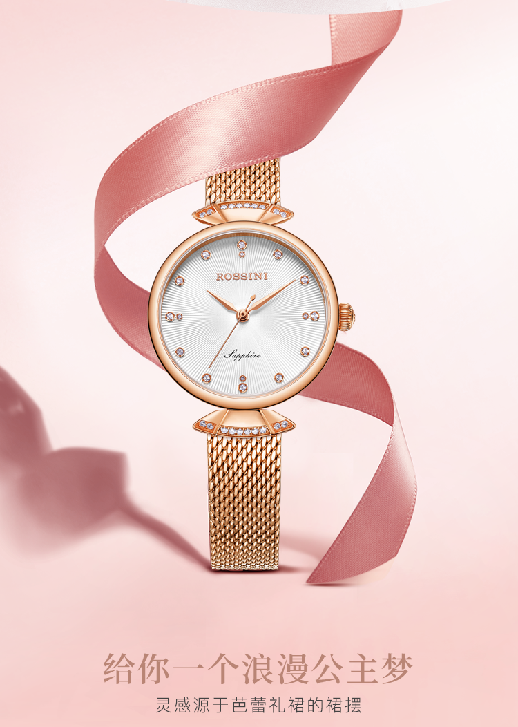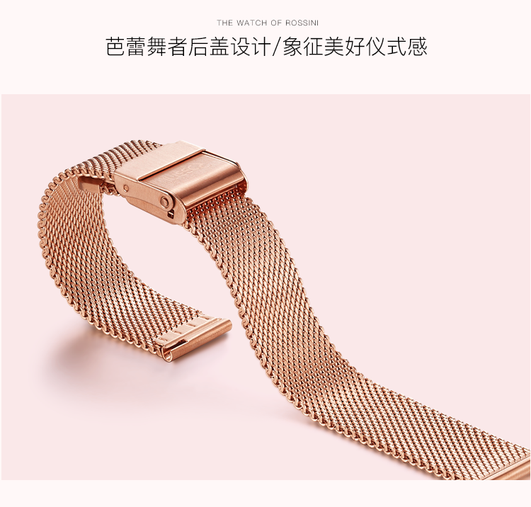 Rossini罗西尼 典美系列 石英手表时尚简约潮流小礼裙白盘玫瑰金编织带女表6842G01G(只) 金色