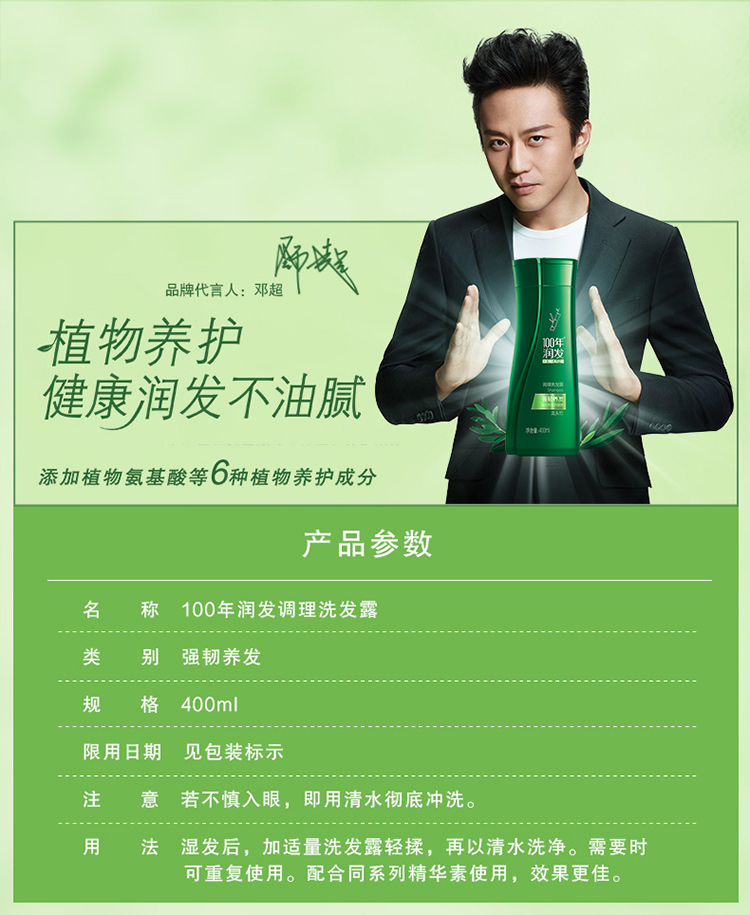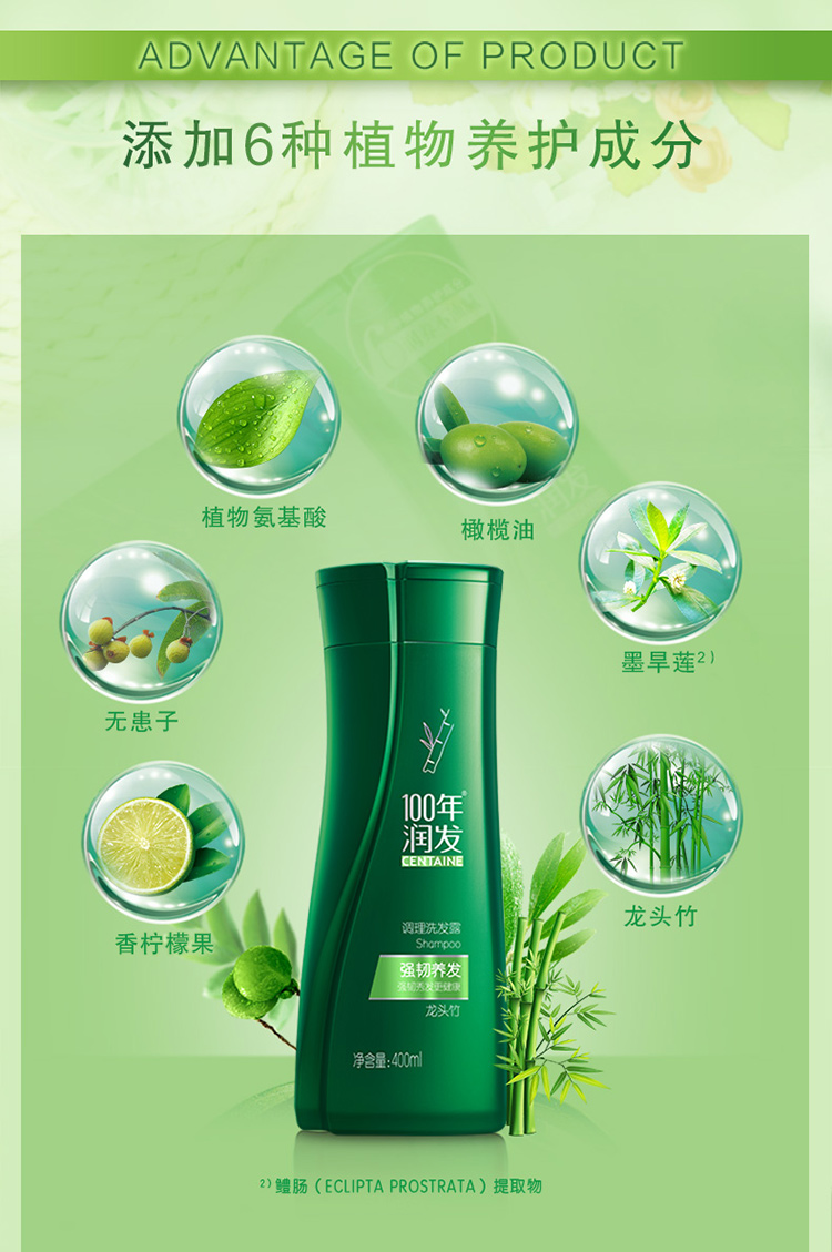 100年润发强韧养发洗发露400ml/瓶 绿色