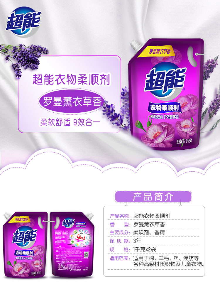 超能衣物柔顺剂(薰衣草) 1kg*2袋 1kg*2袋