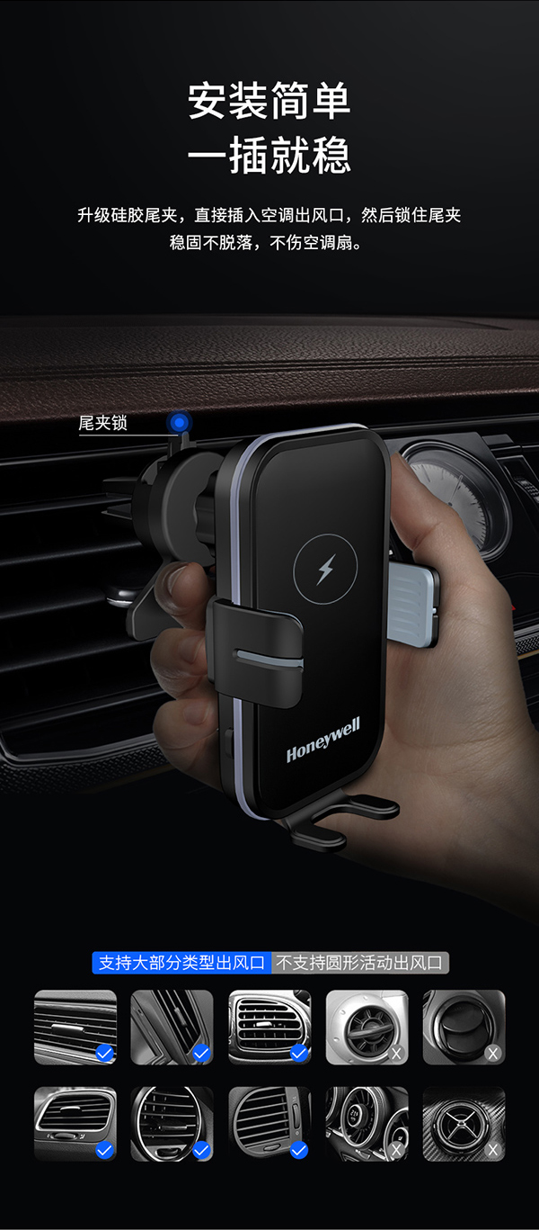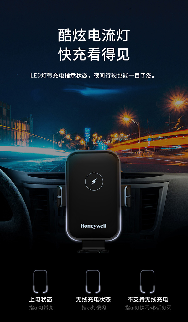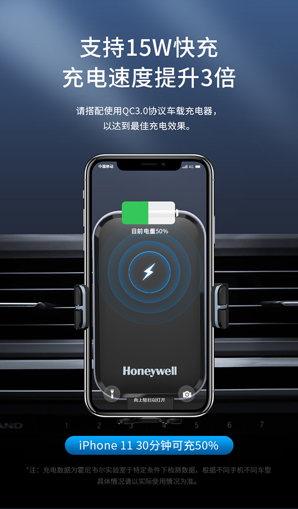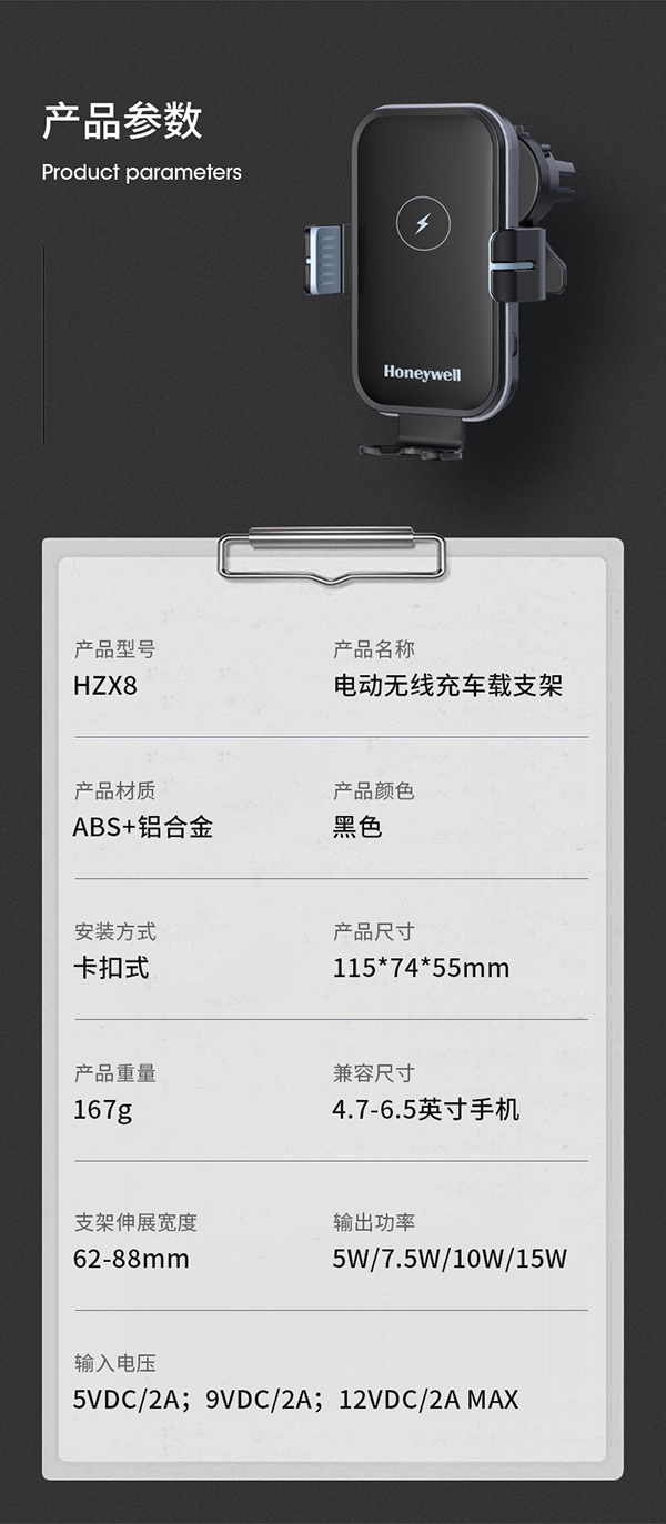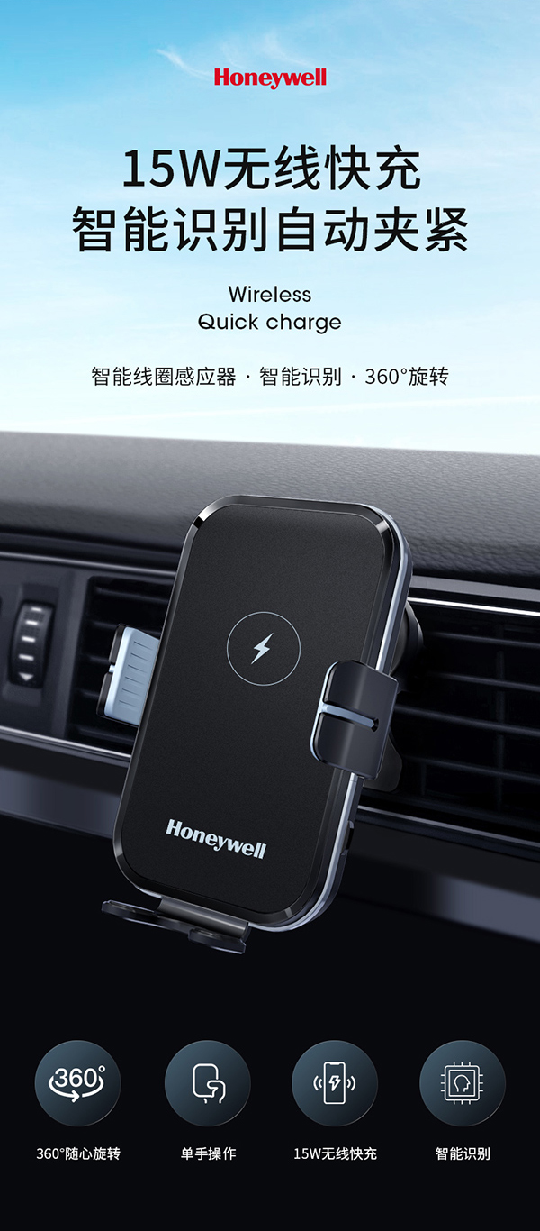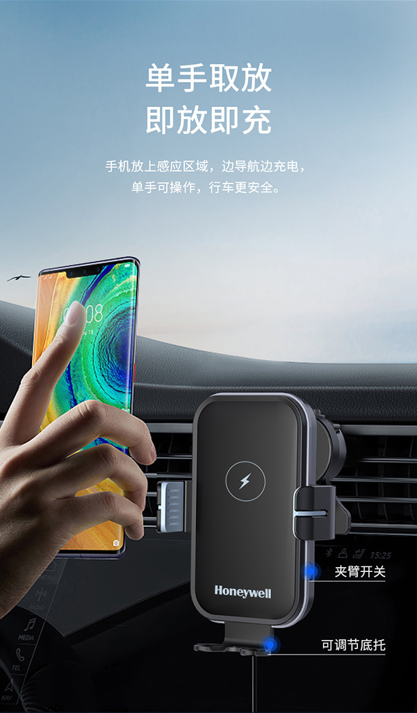 霍尼韦尔(Honeywell) 车载无线充电器 汽车出风口手机支架 HZX8 15W功率 黑色(单位:台)