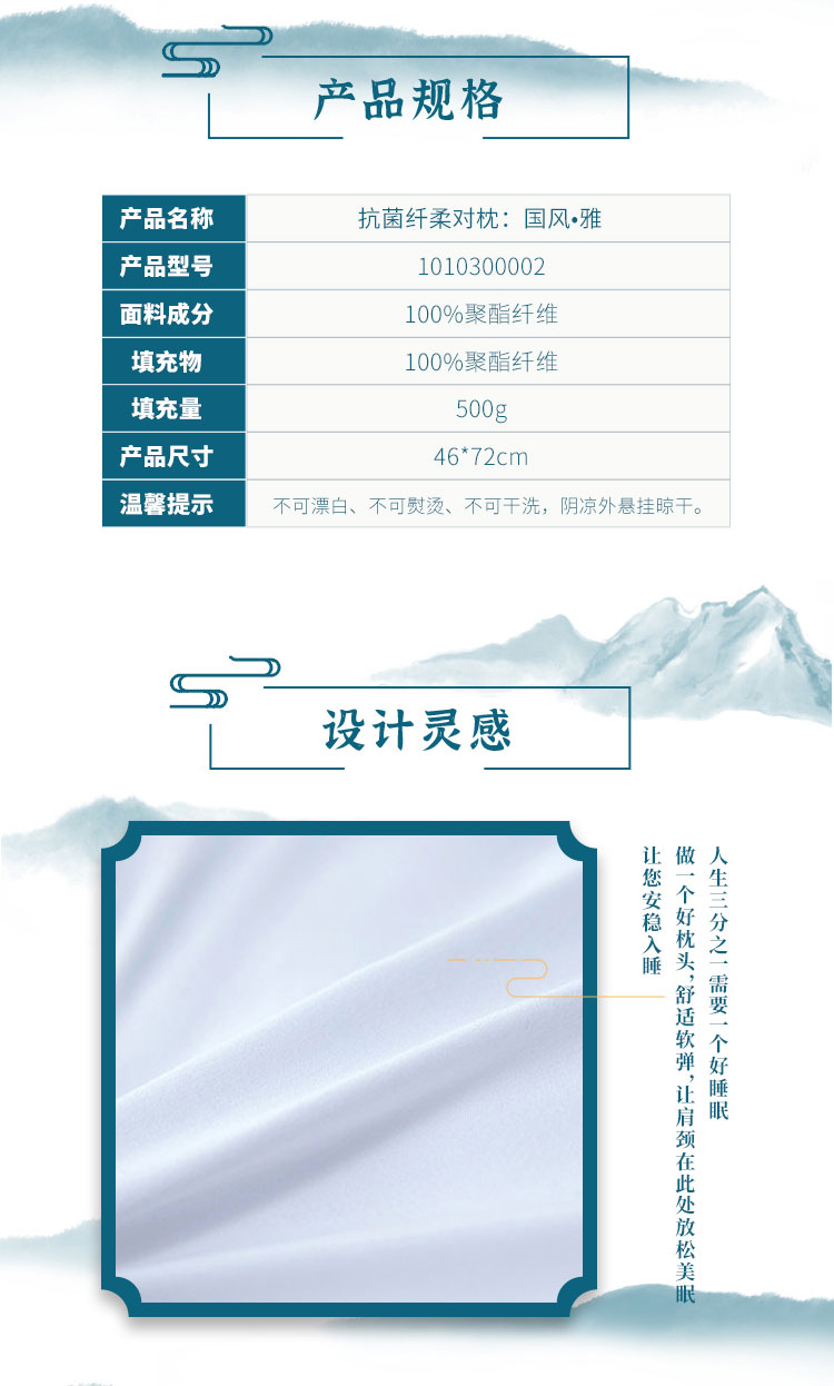 梦洁家纺梦洁抗菌纤柔对枕国风.雅(西藏、新疆、内蒙、甘肃、青海、宁夏不发货) 白色