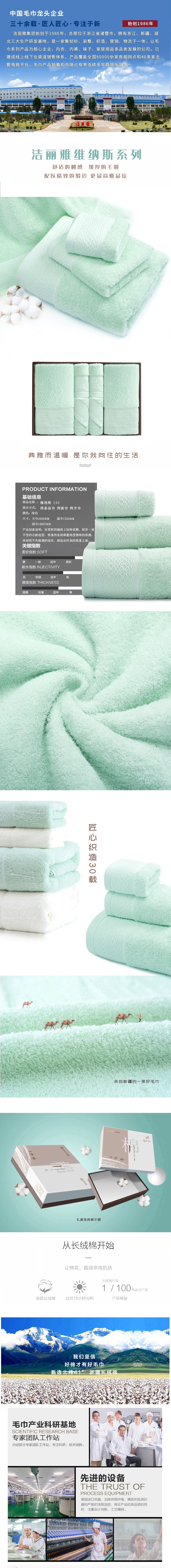 洁丽雅 维纳斯-5新疆长绒棉6条装毛巾(2浴2面2方巾)(单位:套) 绿色
