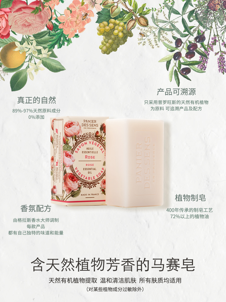 南法庄园(PANIER DES SENS)洗脸沐浴精油固体皂(西藏、新疆、内蒙、甘肃、青海、宁夏不发货) 舒缓薰衣草