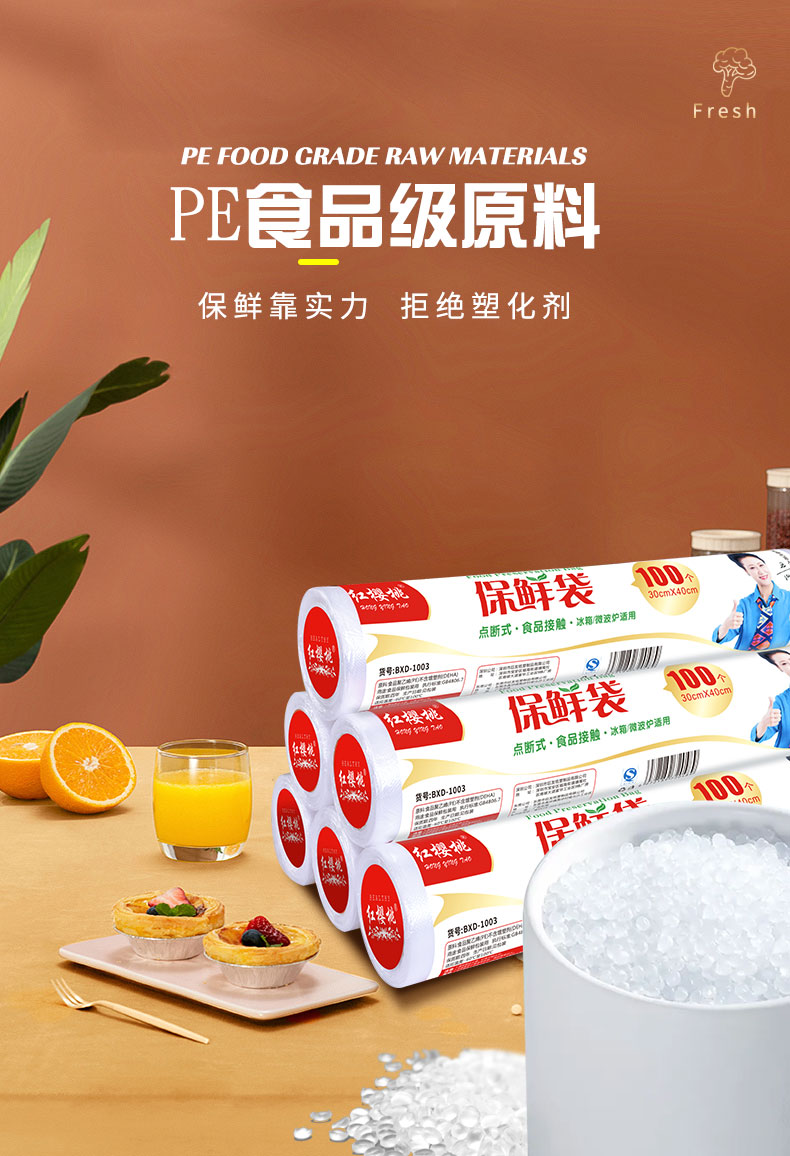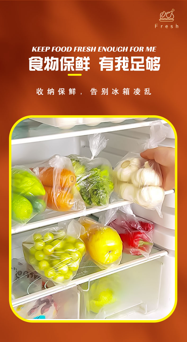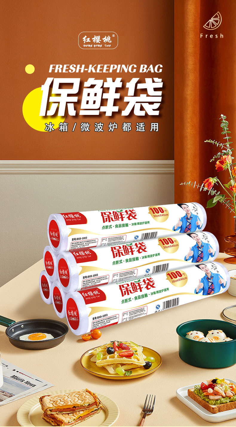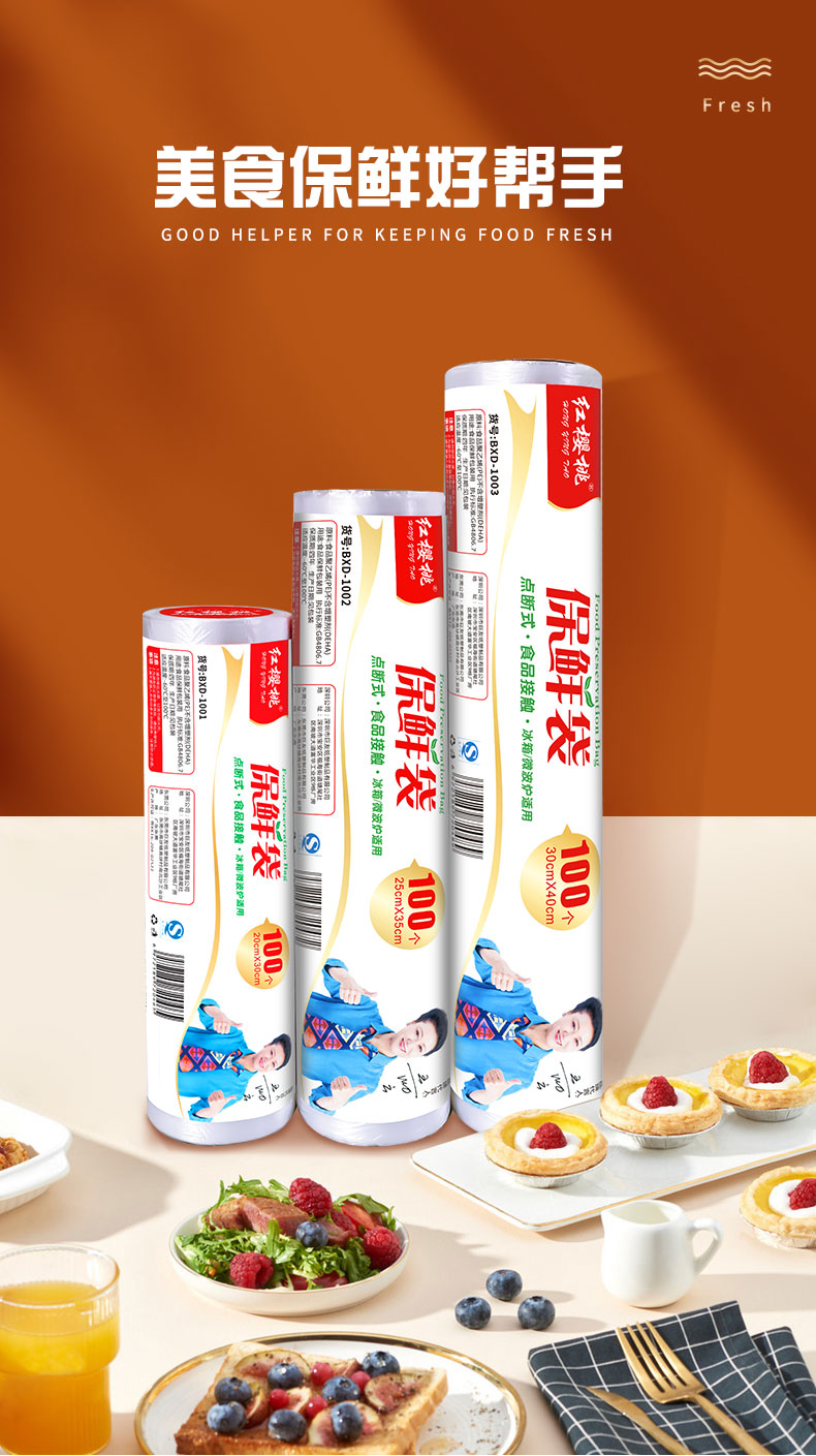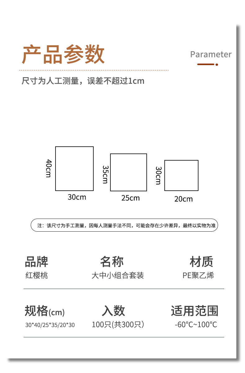 红樱桃保鲜袋加厚实塑料保鲜食品袋子厨房超市大号中号小号(各100只)共300只 白色